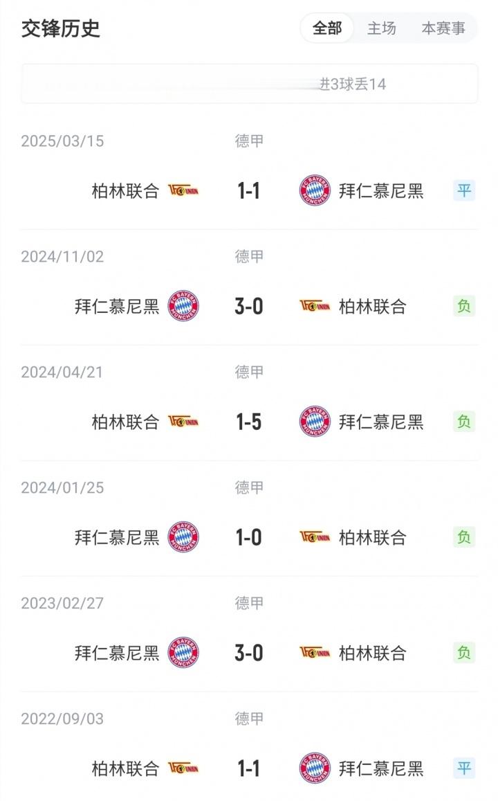 柏林联合近三个主场打拜仁两平一负,还算比较硬
