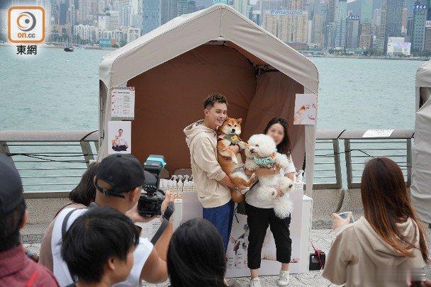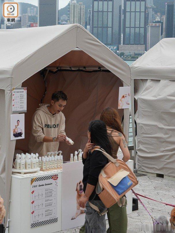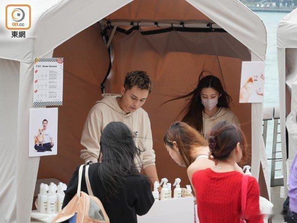 藝人何廣沛8月向拍拖3年的圈外女友求婚,近日他們第一個「BB」出世,就是合作寵物用品生意。昨日二人擺市集,廣沛是顏值擔當,站在檔前賣靚仔樣做生招牌,愛犬則賣可愛,成功吸引人圍觀。
