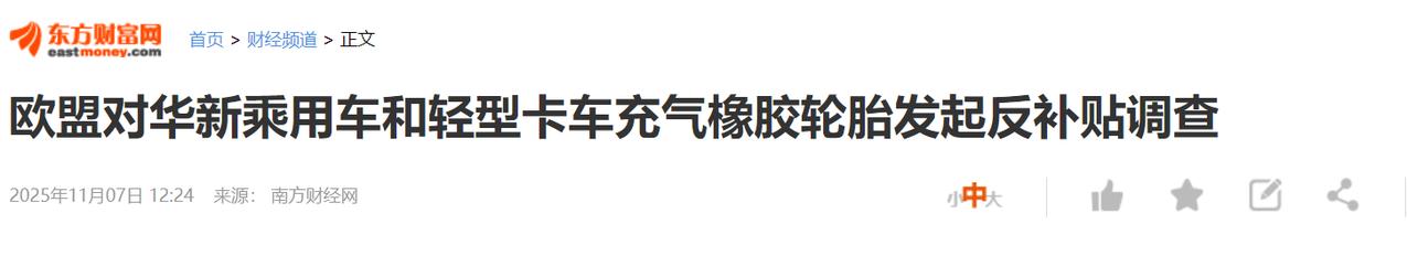 欧盟委员突然宣布 11月7日正式官宣,对原产于中国的新乘用车、轻型卡车充气橡胶轮胎发起反补贴调查!调查期直接覆盖2024全年,损害调查更要追溯到2021年,跨度长达四年,这波针对性极强的操作,根本不是“维护公平”,而是赤裸裸的贸易保护! 还记得 2018 年吗?欧盟就给中国卡客车轮胎安了 “双反” 的帽子,结果呢?2022 年欧盟普通法院直接判咱们胜诉,把那不合理的税令全撤了! 为啥撤?因为法院查出来欧盟算账根本不公平,算咱们出口价时乱扣成本,算他们自己企业的价却啥都不扣,这不是明着偏袒本土企业吗? 那次胜诉的 20 多家中国企业,光退回来的税金就有 5000 万欧元,这活生生的例子就在眼前,欧盟如今还敢故技重施,脸皮是真够厚的。 再看看他们这次拿出来的数据,说什么 2021 年以来中国轮胎对欧出口量涨了 51%,价格比欧洲本地的便宜 30% 到 65%。 可他们压根不提,2023 年欧洲乘用车胎市场里,本土品牌占了 72.89% 的份额,咱们中国轮胎才占 15.34%,连人家零头都不到,这怎么就 “冲击” 他们产业了? 再说价格便宜,那是咱们企业靠技术升级和规模生产降下来的成本,不是靠补贴!就像中策、三角这些企业,建了那么多智能工厂,生产效率比欧洲高不少,自然能卖得实惠些,这难道也有错? 欧盟自己的行业组织还抱怨,说中国轮胎让他们产量降了、利润少了。可海关数据摆在这儿,2024 年咱们出口欧盟的乘用车轮胎是 83.07 万吨,占咱们总出口量的四分之一多点,就算这点量,也没影响欧洲企业赚钱啊。 而且 2024 年欧洲卡客车轮胎进口里,咱们中国占 28% 还是第一,要是真靠补贴,欧盟法院当年能判咱们赢吗?他们就是见不得中国轮胎质量越来越好,老百姓愿意买,才急着搞调查。 更让人看穿的是,这事儿根本不是孤立的,就是欧盟保护自家汽车产业的连环计。他们分管产业的副主席都放话了,说欧洲车十年后可能从每年卖 1300 万辆跌到 900 万辆,怕中国汽车抢市场,先拿轮胎下手。 你想啊,汽车和轮胎是一家子,轮胎成本涨了,中国汽车在欧洲的价格优势就小了,这招真是打得一手好算盘。 可他们不想想,奔驰 CEO 都直言这样搞欧洲损失最大,特斯拉因为之前加税都涨钱了,最后还不是欧洲老百姓买单?换个轮胎多花几百块,这公平吗?。 十年前光伏板的教训还热乎着呢,欧盟当年给中国光伏板加税,结果自己工厂关门,最后还得乖乖买咱们的。 现在又来折腾轮胎,难道忘了 2018 年卡客车轮胎 “双反” 后,咱们出口占比从 11.66% 跌到 4.72%,可欧洲轮胎价格反而涨了? 这次他们要是真征关税,受伤的还是欧洲车主和汽修店。咱们中国企业也不怕,20 多家企业上次能胜诉,这次照样能拿出证据讲道理,欧盟的歪理站不住脚。 说到底,欧盟这就是输不起的贸易保护。自己产业升级慢,就见不得别人进步,拿 “补贴” 当借口,用调查当工具,根本不是什么维护公平。 中国轮胎靠的是质量和性价比,不是靠补贴,这一点欧盟法院都认了,全世界消费者也认了。接下来这 13 个月的调查期,咱们企业肯定积极应对,最后鹿死谁手还不一定呢,想靠贸易保护拦住中国制造业的脚步,那是做梦!