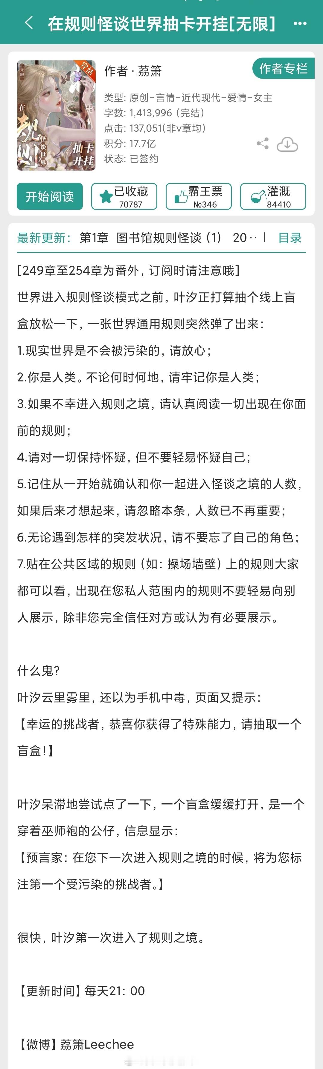 【543】《在规则怪谈世界抽卡开挂[无限]》作者:荔箫(晋江VIP2024-9-26完结)