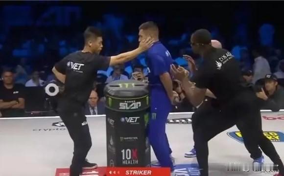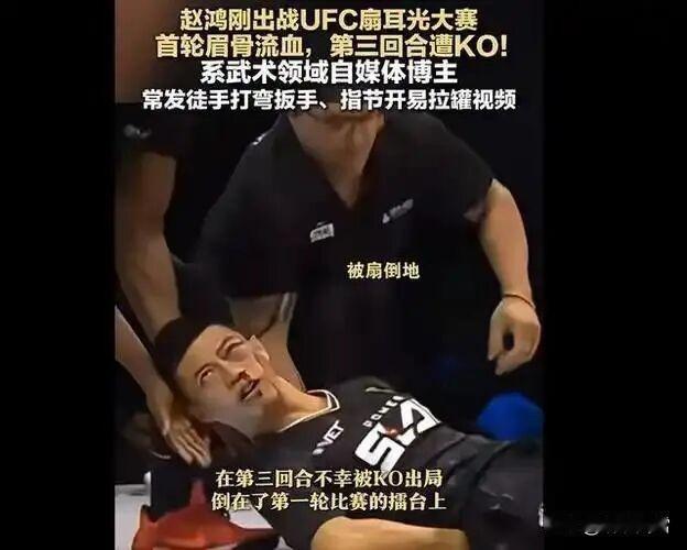 一巴掌下去,人倒了,眼废了,这叫比赛?这叫打“真人沙包”。武师“铁臂阿刚”正事不干,跑去跟人比扇耳光,这不找揍吗?可把祖师爷的脸丢光了。 “铁臂阿刚”是谁?真名赵鸿刚,早年玩跑酷,后转练通背拳成为第九代传人,2020年起因拍视频徒手掰弯扳手,网上被叫“扳手哥”,粉丝几百万,也算武术圈顶流了。 可再顶流也经不住这种扇啊!UFC总裁白大拿搞这玩意,本就不是竞技,他为的是流量和广告。扇耳光大赛主要规则就是不准躲、轮流扇,看谁先把对手扇倒。拳击、散打再狠,好歹有防守、有技术,这比赛纯拼谁头铁、脸厚,拿命换点击量。 沙特那场“Power Slap”比赛,规则就是隔桌互扇,不准躲,不准挡。赵鸿刚第一巴掌就被扇出血,第三回合直接被剋晕,眼眶骨折、缝五针,左眼重影看不清。嘴上说“没事,缝个针就好”,可这伤,真不是闹着玩的。 一个练通背拳的,跑去参加这种野路子。一身功夫不比招法不比身手,比谁脸皮厚扛揍,这不是给传统武术丢脸么。结果咋样,被哈萨克斯坦阿曼塔耶夫一巴掌打得翻白眼了,眼睛已不可能痊愈,可悲! 所以啊,年轻人可别被流量忽悠,别以为上个国际擂台挨顿打就能扬名立万。好奇害死猫,别拿命去赌出名,流量也不是命换来的。 争一时胜负,留一生遗憾! 练武不练心,到头一场空。 前车之鉴,后事之师,中国人还是别碰这玩意为好。 铁臂功夫 练拳沙包 功夫扳手挑战