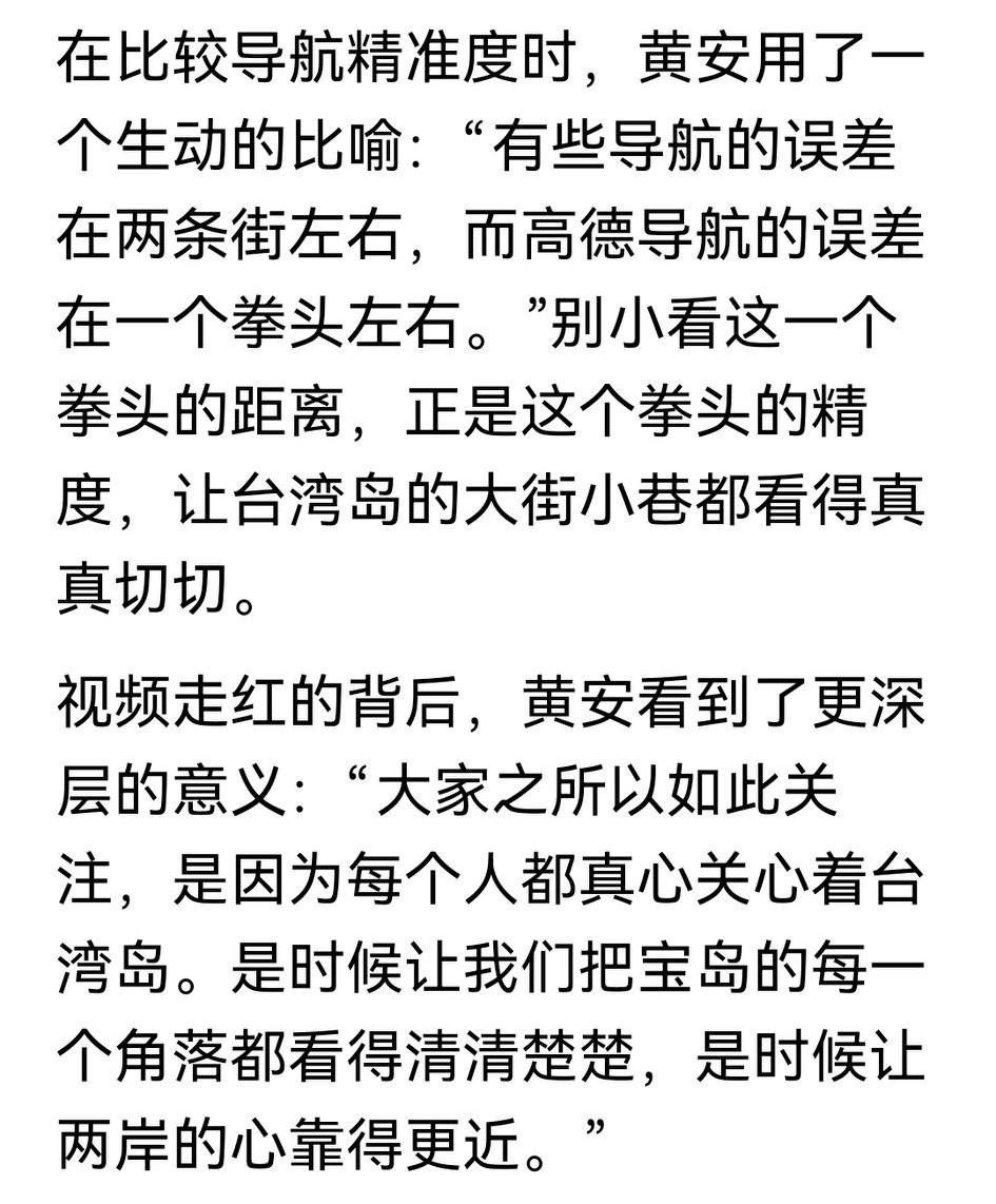 吉林一号+北斗系统+高德地图,台独分子,哪里逃?! 台湾省统派歌手黄安近日发现,高德地图在台湾的精度误差在一个拳头左右! 这是一个何其精准的比喻呀! 按照这个精度,那些独派分子家在哪里, 每天出行路线, 估计早就不是秘密了吧? 不然,民进党那十多名"资通军"个人信息从何而来?! 那么,什么赖“红三代”,什么沈伯洋, 一旦动手了,还能躲哪儿去?!