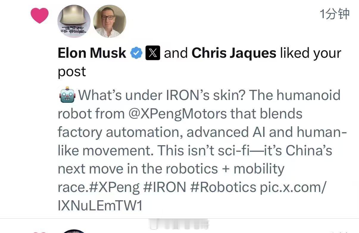 今天马斯克还在X上点赞了IRON的视频,后面大师兄跟马斯克就“隔空对话”上了,双方都互相称赞了一波。