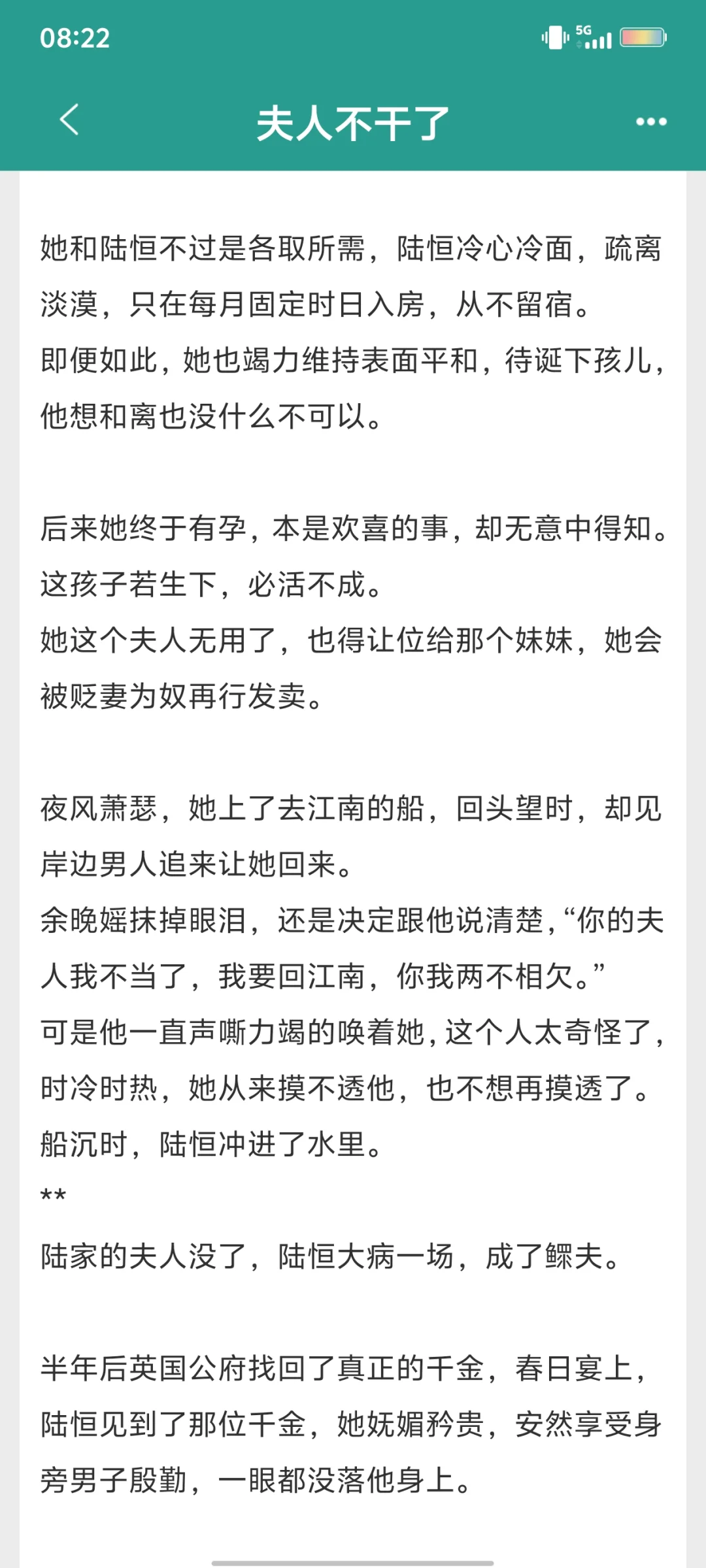《夫人不干了》by火烧花果山 22年完结的文,一共85章 柔弱美人vs高岭之花 真假千金,很狗血 男主追妻火葬场 1v1,sc,he,带球跑
