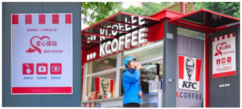 同时,在广州市总工会的指导下,报刊亭KCOFFEE还成为城市街头的工会爱心驿站,为户外劳动者和有需要的居民提供免费饮用水、应急药箱、充电等便民服务。