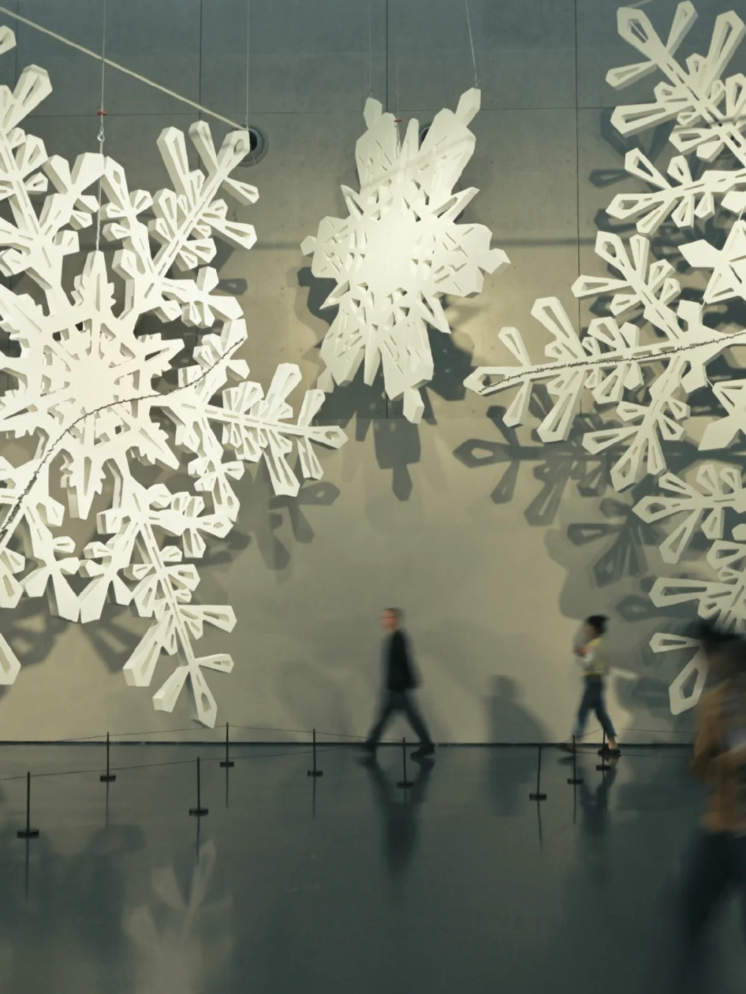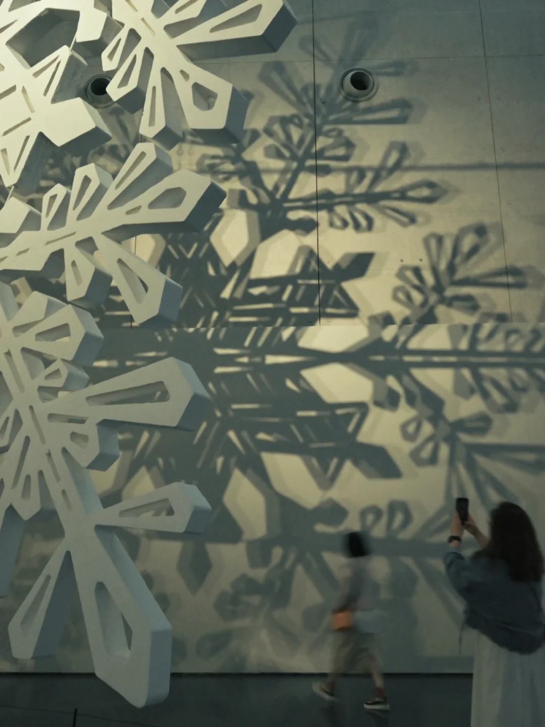 直径十米的巨型雪花,将陈列在挑高13米的展厅中,视觉效果满满,春天也能风花雪月。