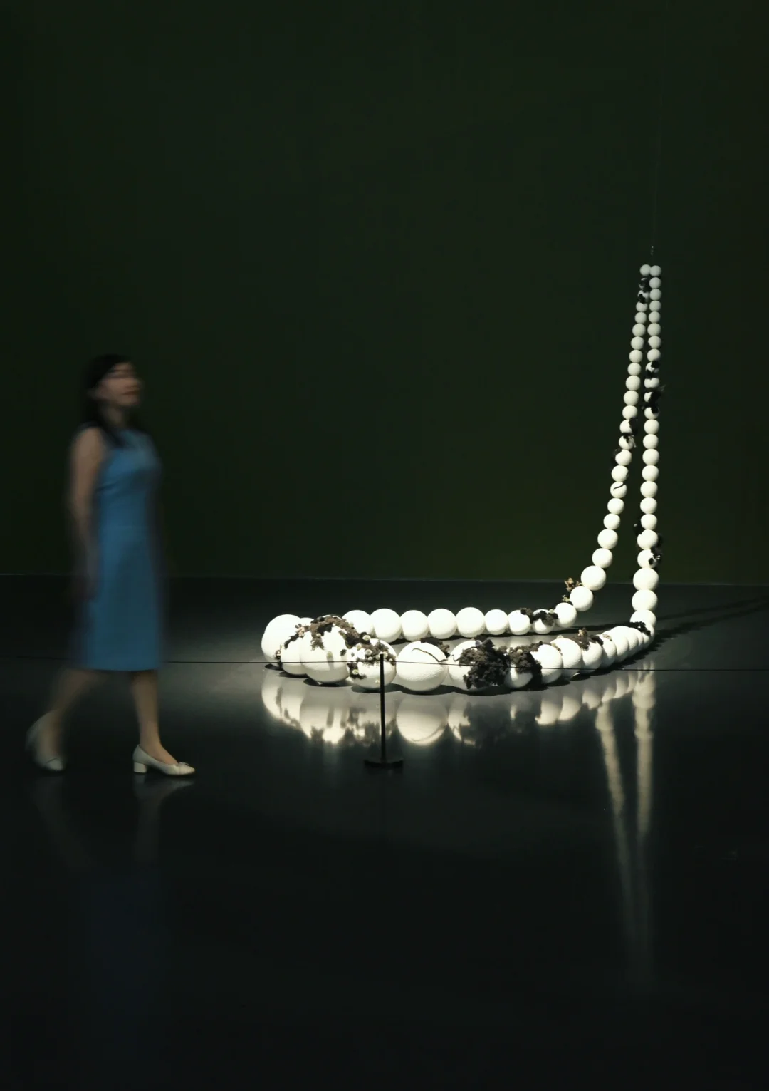 自然与人要做到和谐需要下很大功夫,人类的快速发展伴随着对自然的入侵“寄生”在珍珠项链上的苔藓,蕴含着不同的思考。