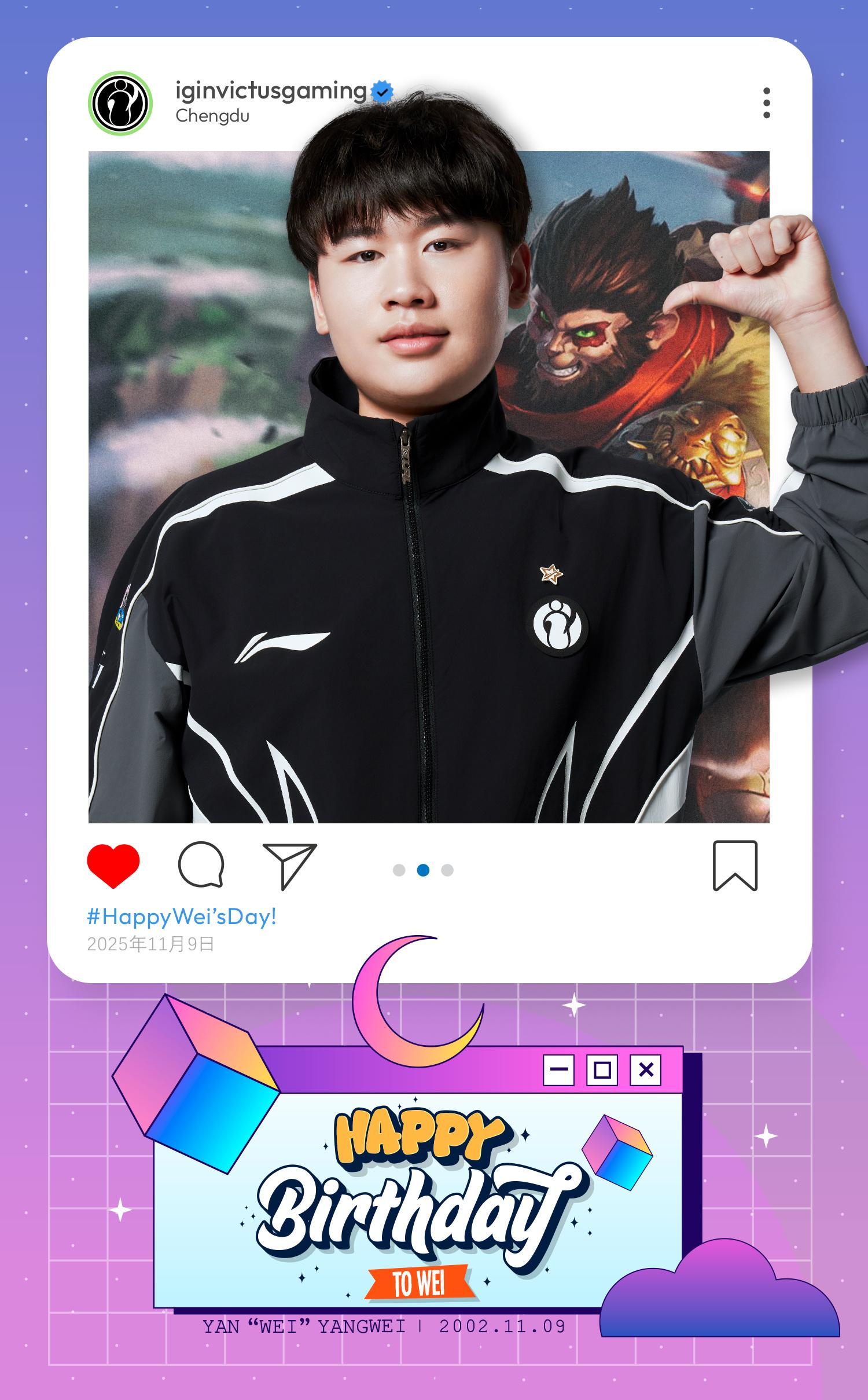 虎扑11月09日讯iG官媒发文祝贺Wei生日,具体内容如下: