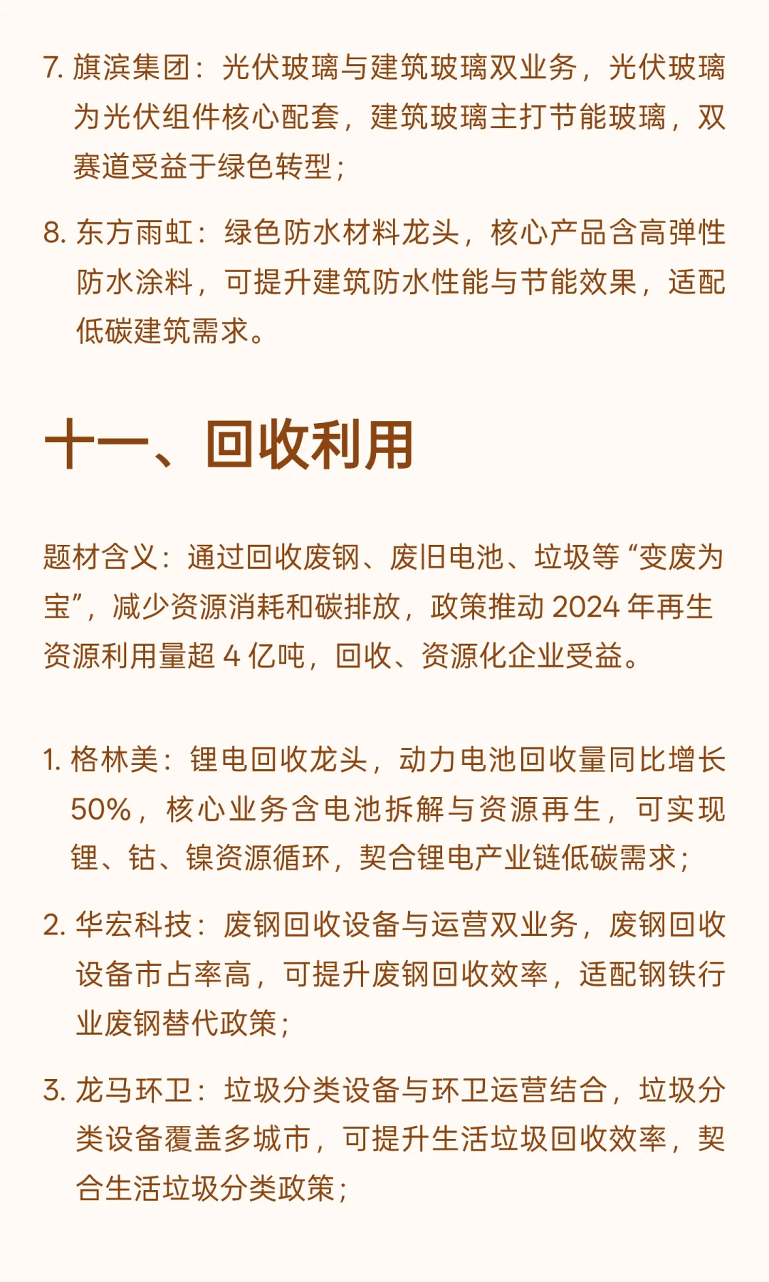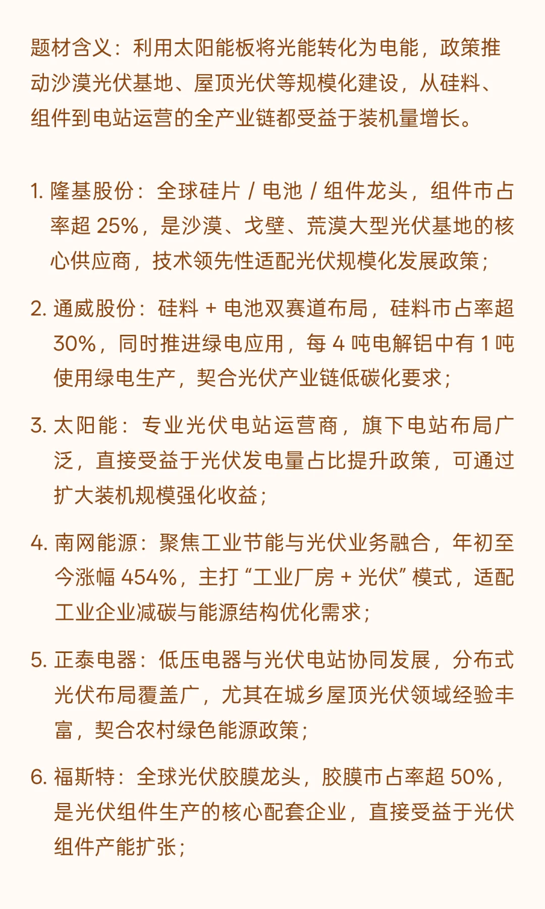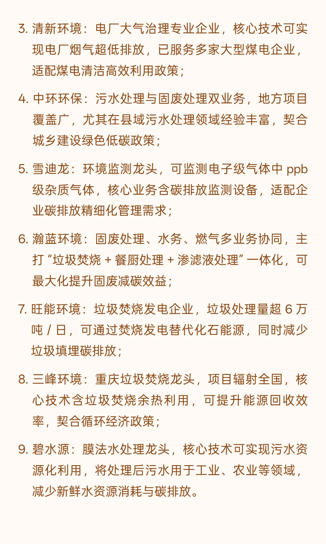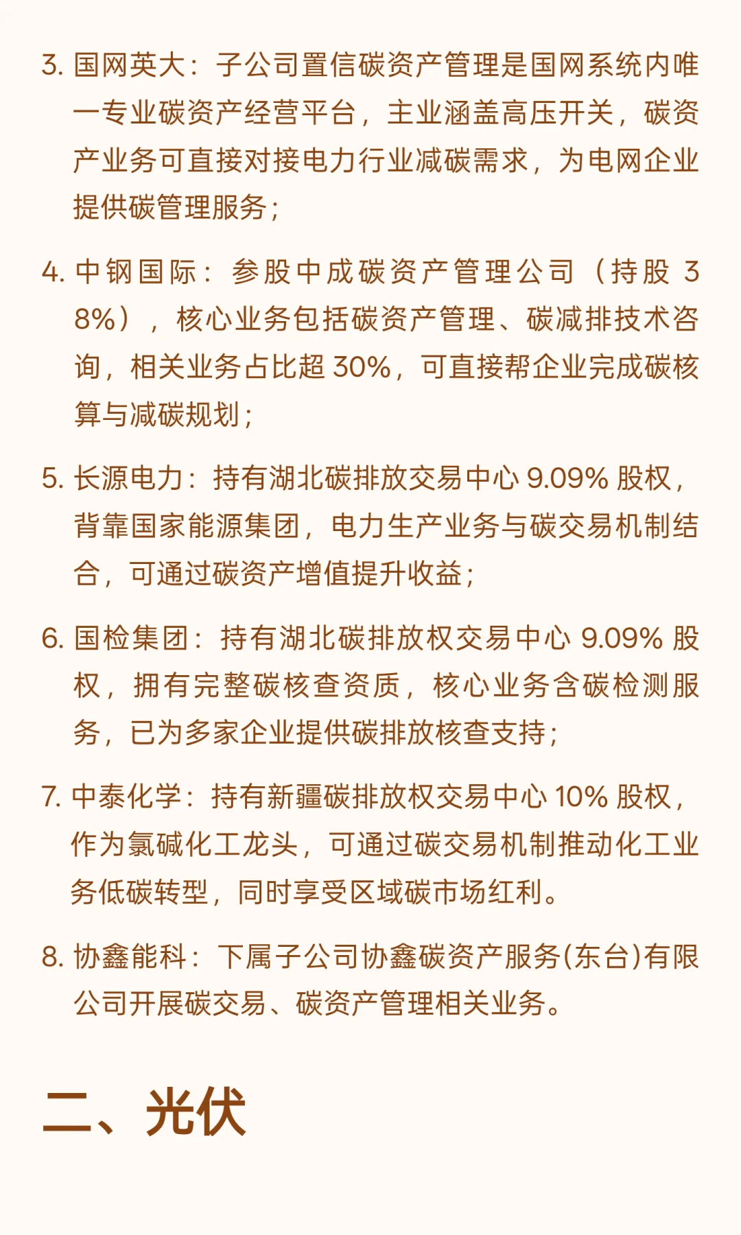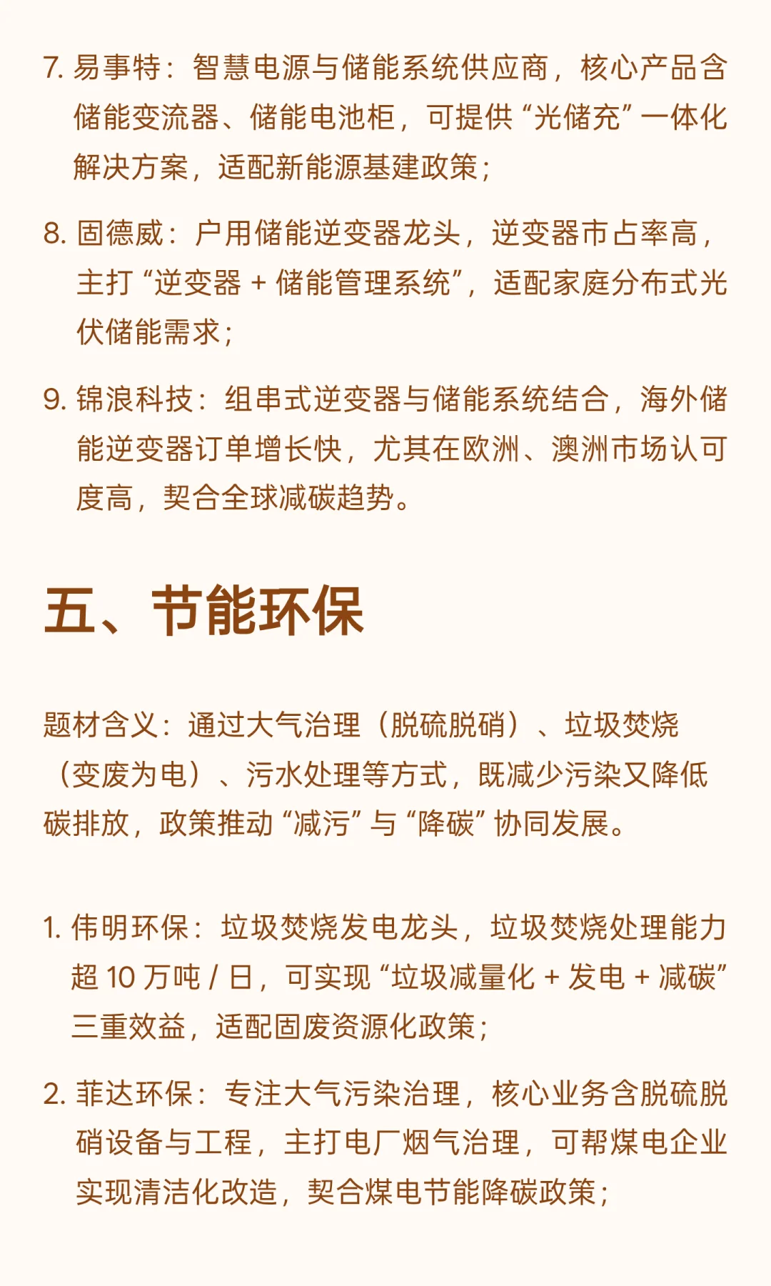 接下来,为大家按照 13 大核心题材拆解,每个题材都列出直接受益的核心标的,包括公司核心业务、关键数据,以及和双碳政策的关联点,帮大家清晰看懂郑策红利流向。