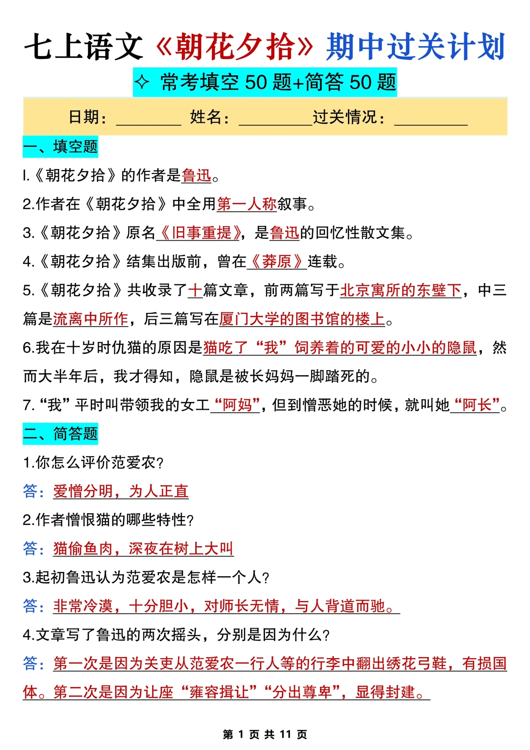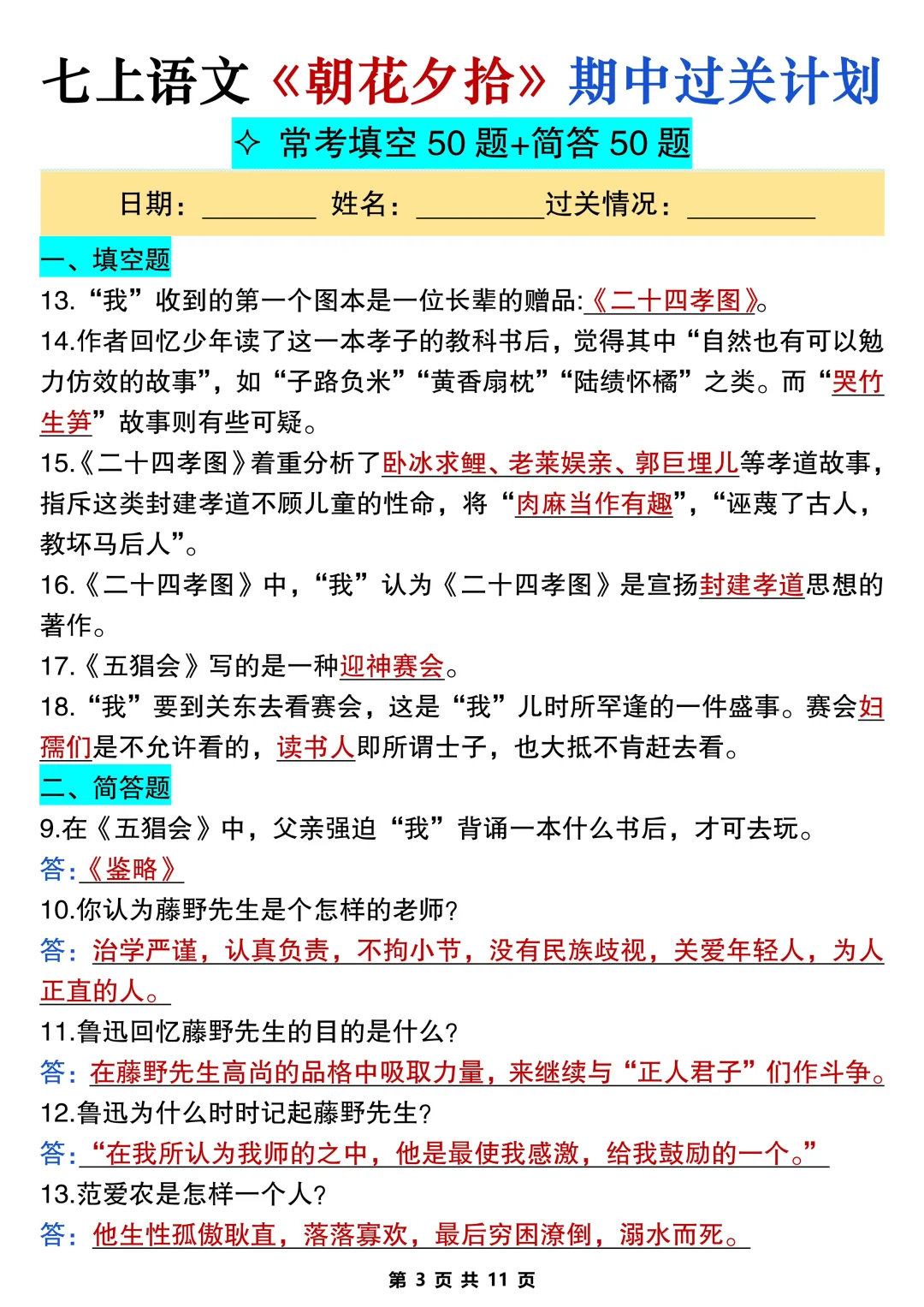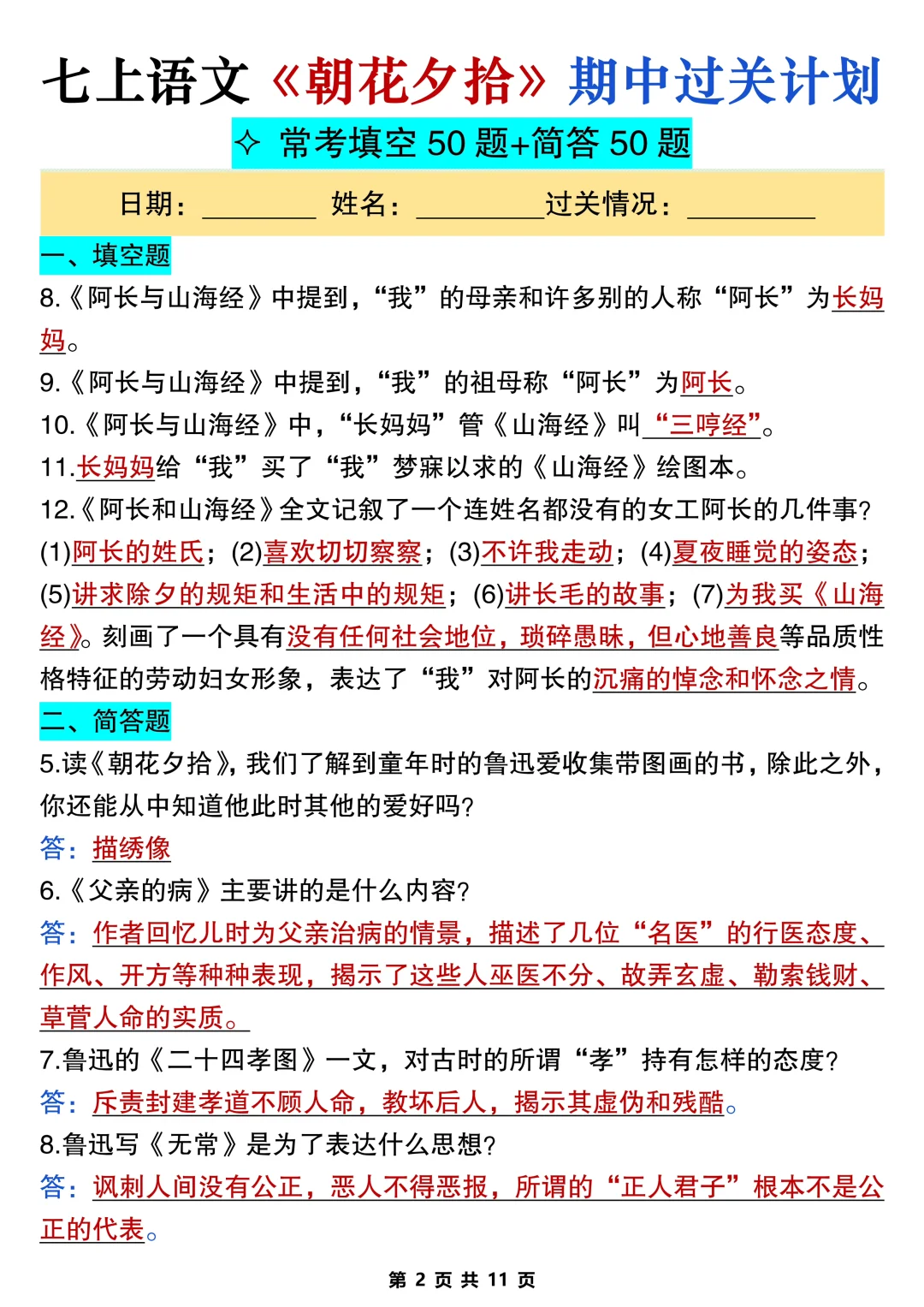 七上语文期中《朝花夕拾》吃透这11页纸就够了