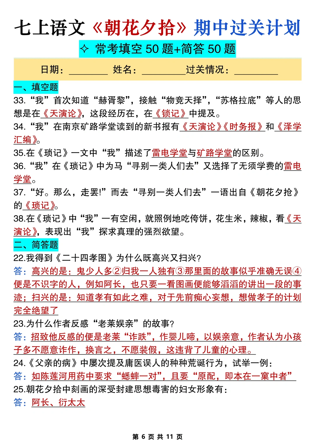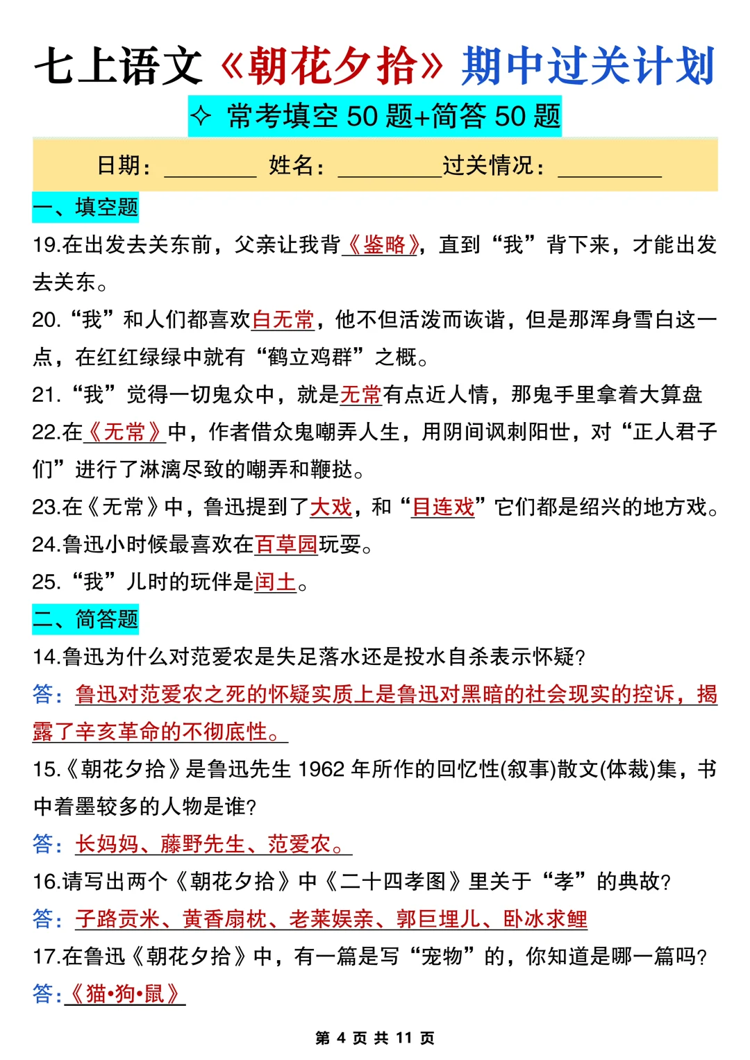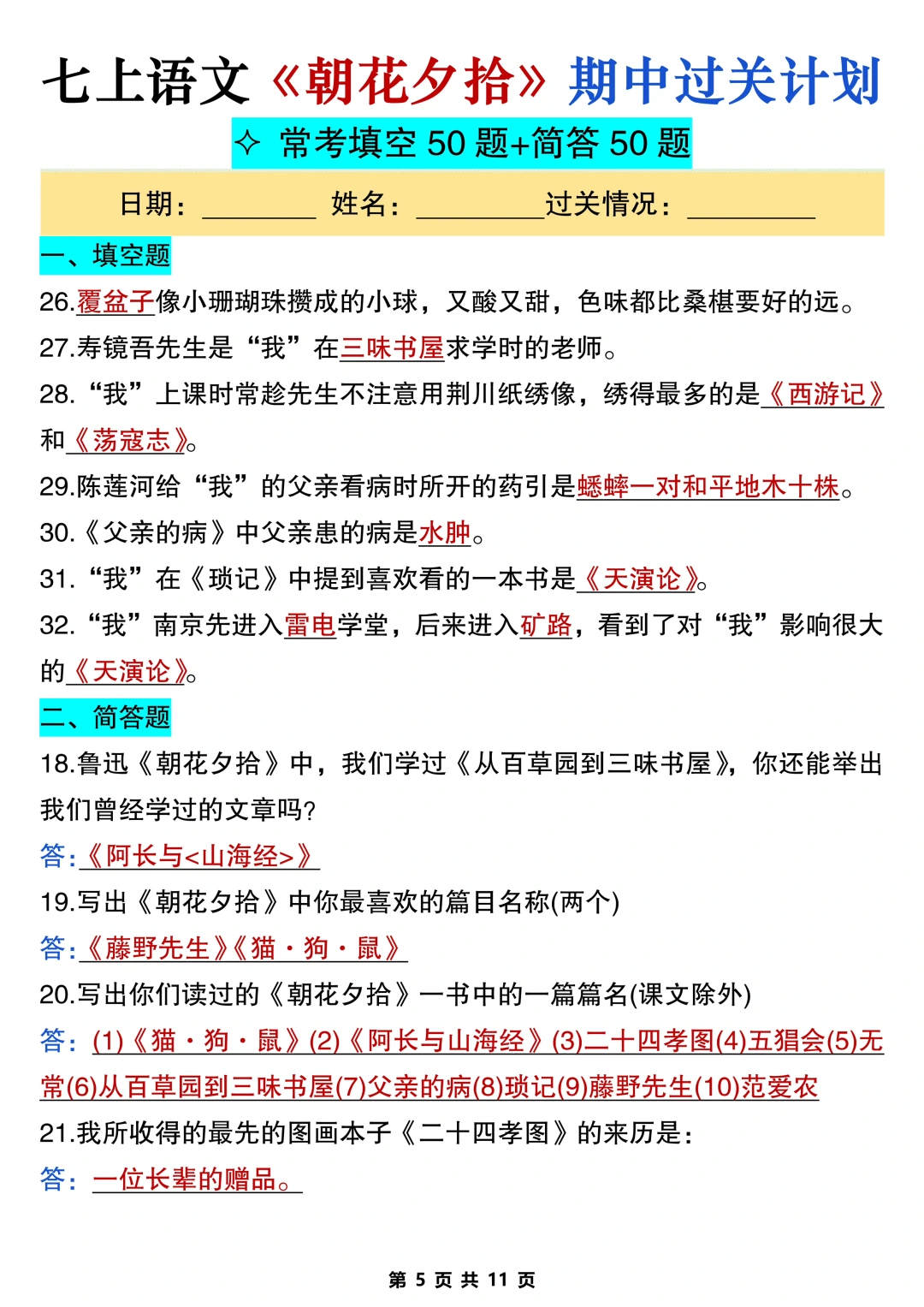 七上语文期中《朝花夕拾》吃透这11页纸就够了