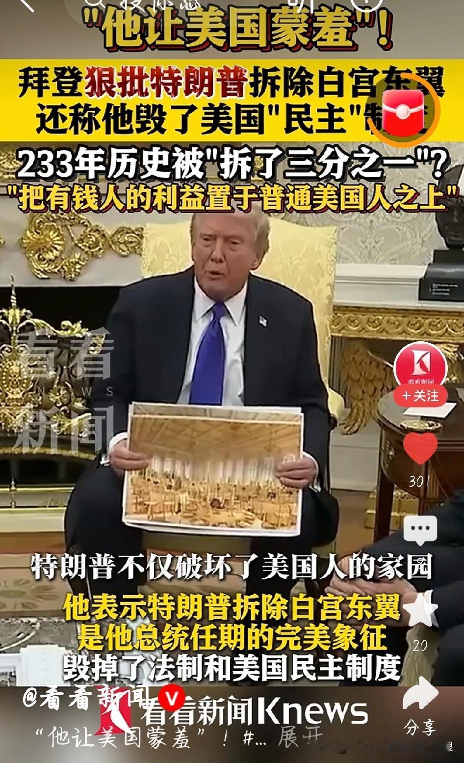 拜登火力全开!直接骂特朗普让美国蒙羞,这瓜太劲爆 美国这俩前总统和现总统,又撕起来了! 前总统拜登在公开活动上直接点名特朗普,说他干的事让国家蒙羞,不仅拆白宫东翼想改宴会厅,还把美国的民主、法制都给搞乱了。 拜登还吐槽,特朗普眼里就盯着有钱人,把富人利益放在普通美国人前面,不少老百姓都没占到好处。 俩大佬对着掐,网友都看乐了:“美国政坛的戏比电视剧还精彩”“这哪是批评,简直是公开开撕”。 你觉得拜登这话说到点子上了吗?聊特朗普 美国拜登 老拜登