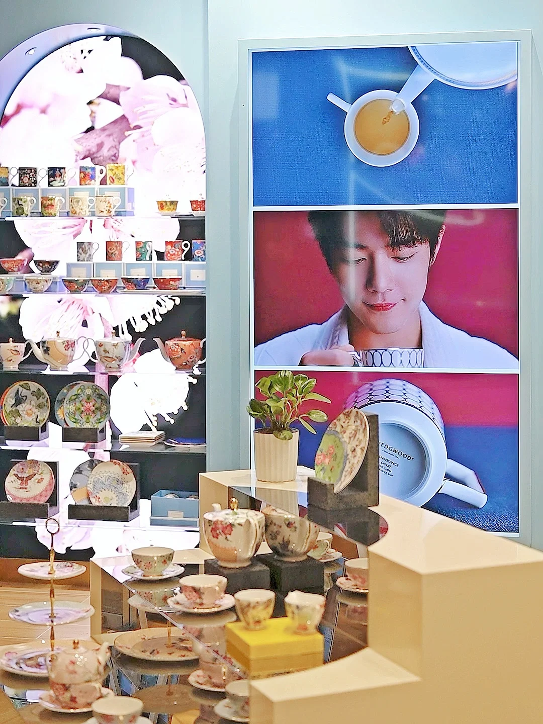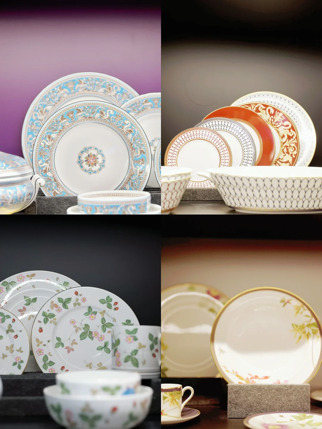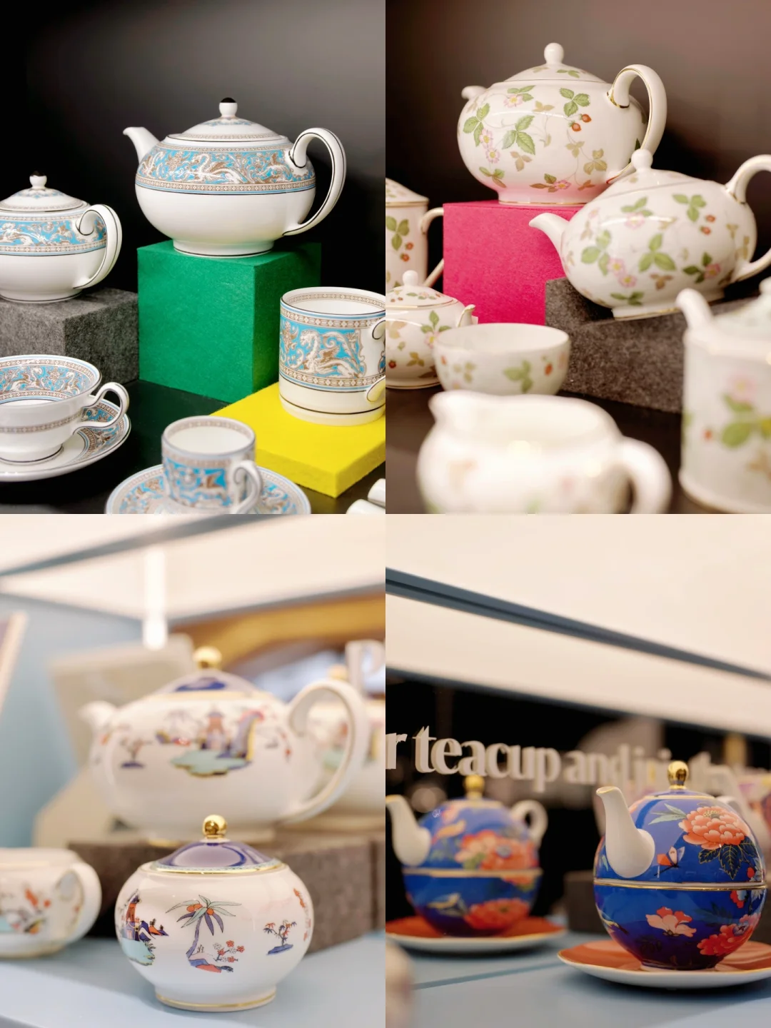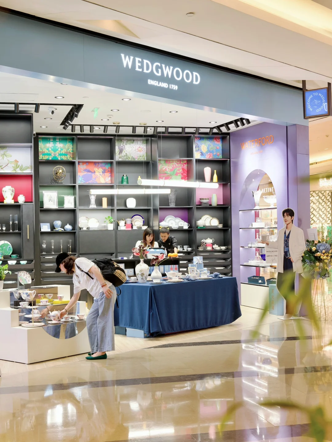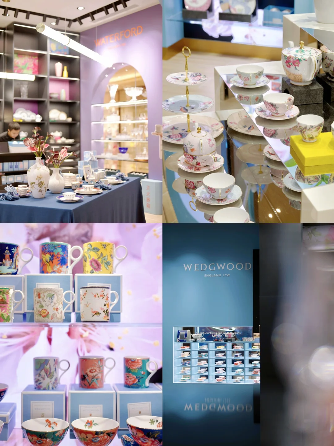 这家就是英国皇室御用的餐瓷品牌WEDGWOOD,之前也听说过,创始人还是达尔文的外公,伊丽莎白二世👑的登基宴会钦点餐具也是他们家的,清代英国使团在到访中国的时候,就把WEDGWOOD制作的一套瓷器作为礼物送给乾隆,据说他也很喜欢,毕竟是用天然动物骨粉烧制的,颜色更加温润,轻薄又透光。☀️