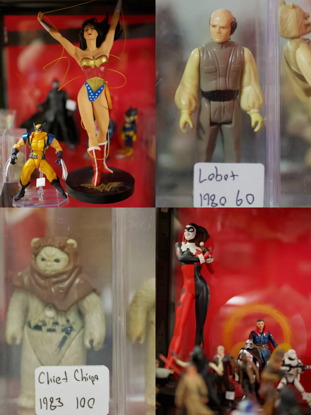 除了漫画,周边🧸也很丰富:玩偶、冰箱贴、冰格、胸针、钥匙扣、贴纸、COS服装、手办、海拔、道具等等,其中值得一提的是,有个柜子里面还有上世纪的古早手办以及星球大战定制的周边。