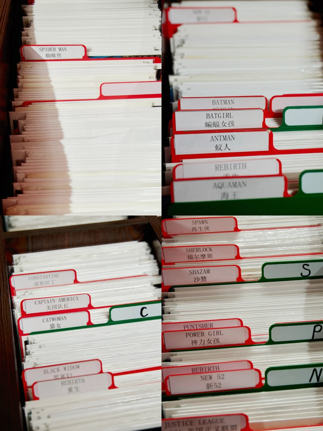 进门的右手边很多木箱装的都是期刊,大部分都上世纪的绝版美漫,目前店里最早的漫画书籍有上世纪40年代的,之前还有30年代的。箱子里面按照字母顺序分配的,方便大家查找🔍,期刊包装的保护板也是老板专门定制的。木箱左侧有放着精选合集,相比期刊它的阅读价值更高,但收藏价值就降低了,因为期刊不会再版。