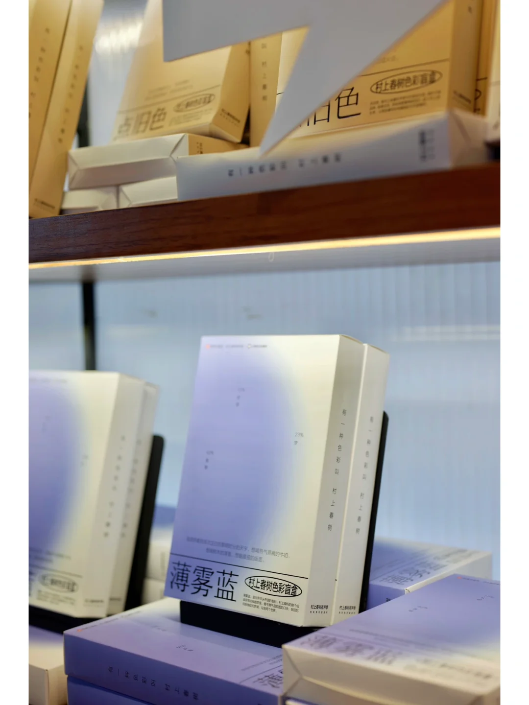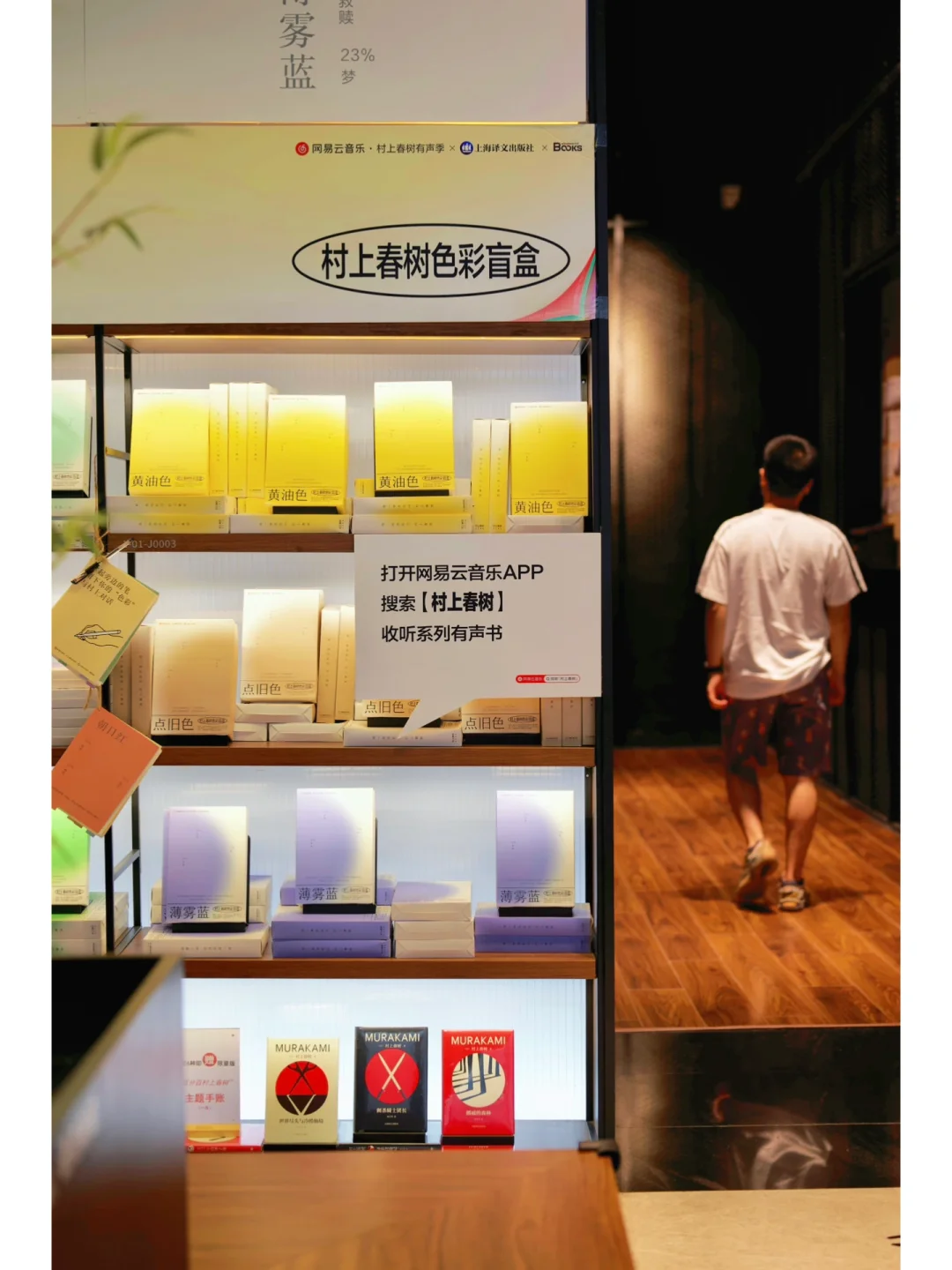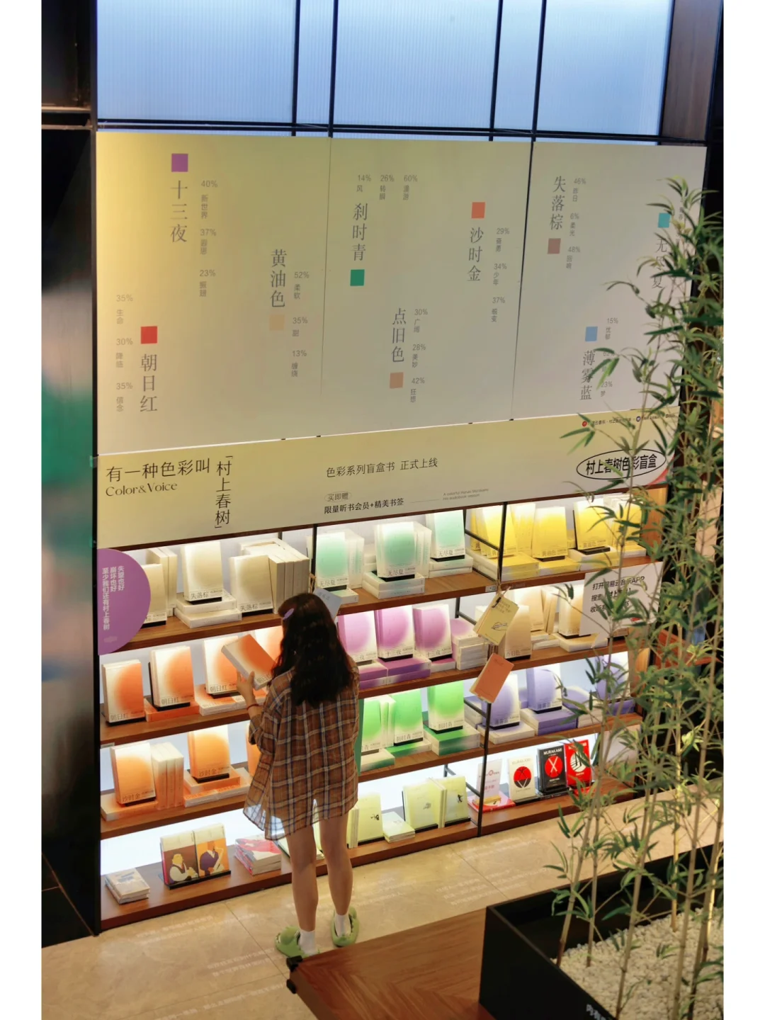 在找讲演厅的时候,意外发现发现书店还有村上春树🗻的盲盒书架,整列的书架都是村上春树的书,但是都是盲盒,盲盒有无尽夏、失落棕、刹时青、薄雾蓝、黄油色、朝日红等9个颜色,绘制成一整面多巴胺墙,每个色系之间的配合都恰到好处,无疑是今天书店里的一抹盎然。朋友选择了薄雾蓝🔵,这个颜色她最喜欢,跟我说摇了一下有点重,应该是本好书,结果竟然是《世界尽头与冷酷仙境》,村上春树的三大杰作之一,刚好这本书朋友没有。