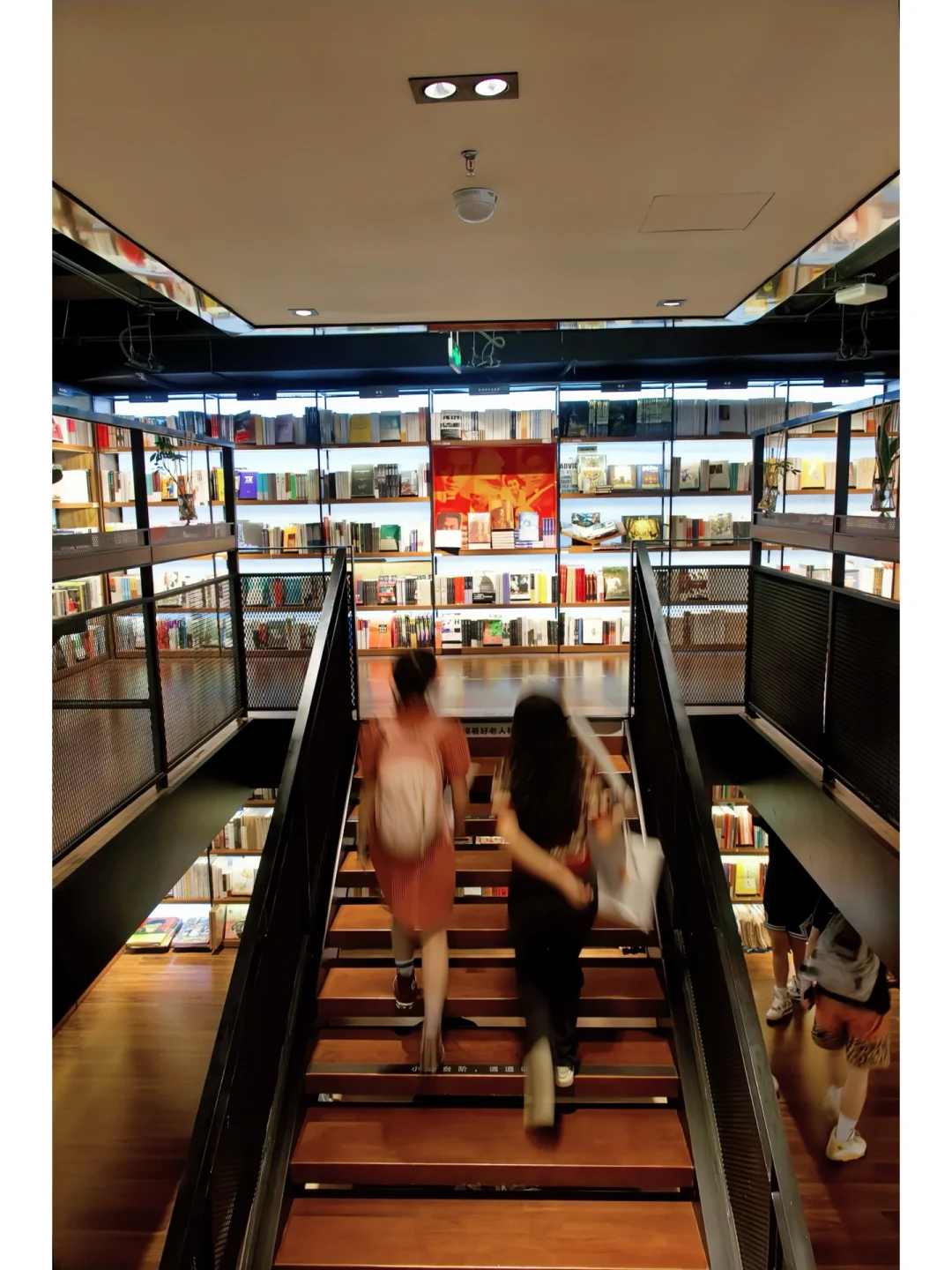 不管是从前门走到后门,还是从一楼探寻到三楼,书店的空间立体感都恍若暗藏玄机的“局中局”,又犹如盗梦空间里的“梦中梦”。😴