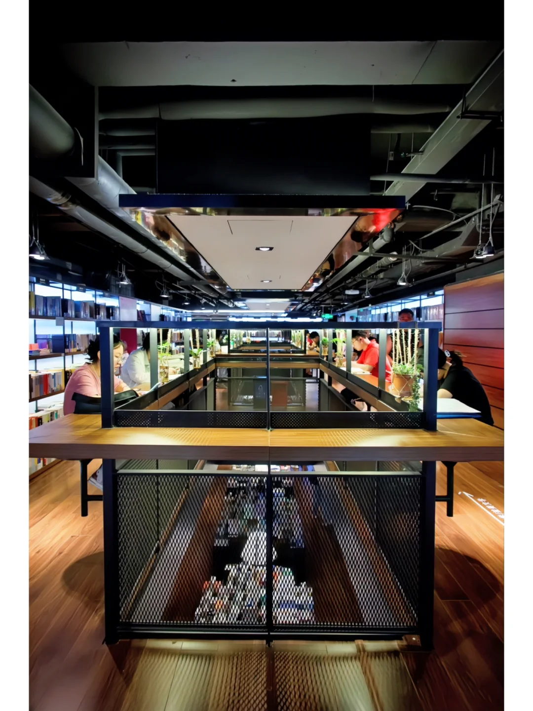 距离虽远,丝毫不影响对它的喜爱,喜欢这家是因为这是成都东门最大的书店,书分为三层,有10000㎡。东门曾是成都工业相对集中的区域,所以书店在设计上有受工业风🏭的影响,每层楼都有不同的阅读空间,座位也非常多,1.5层还有一排木制座椅,让人有种回到大学图书馆的感觉。