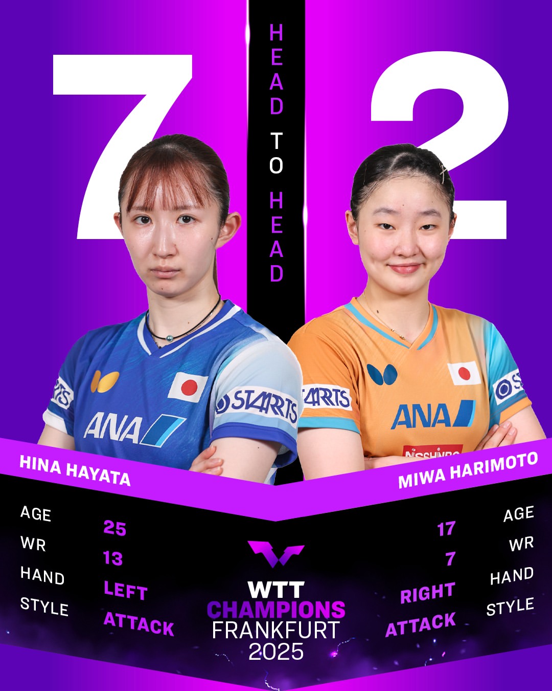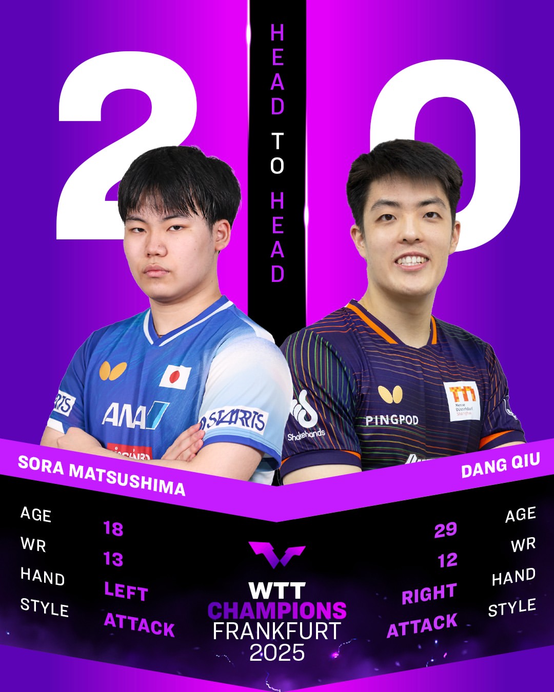 WTTins报道。以下是两位决赛选手在WTT系列赛历史上的交锋记录#WTTFrankfurt#乒乓球