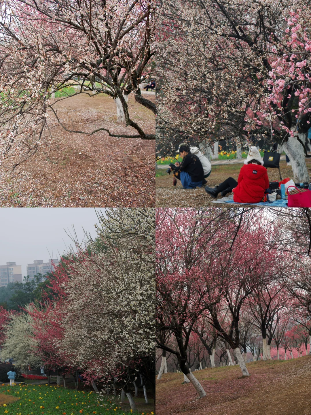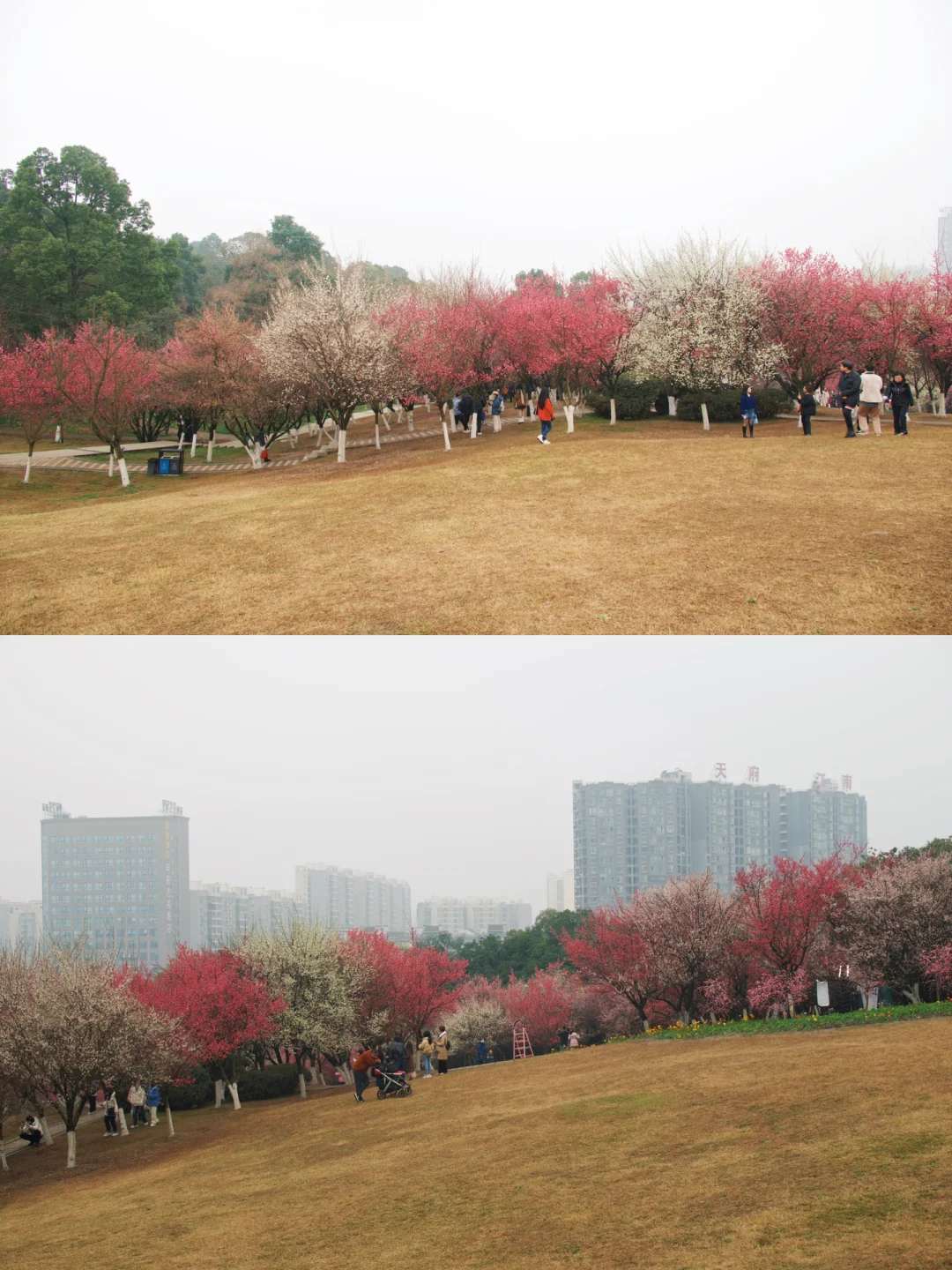 成都植物园的梅园从建园之初就有了,300多株梅花在这里生长了30多年,梅花园里的梅花品种以朱砂梅、杏梅、宫粉梅为主,美人梅也较多,另外有少量的绿萼梅。目前正是最佳赏花期👍,花期大概可以开到3月初。
