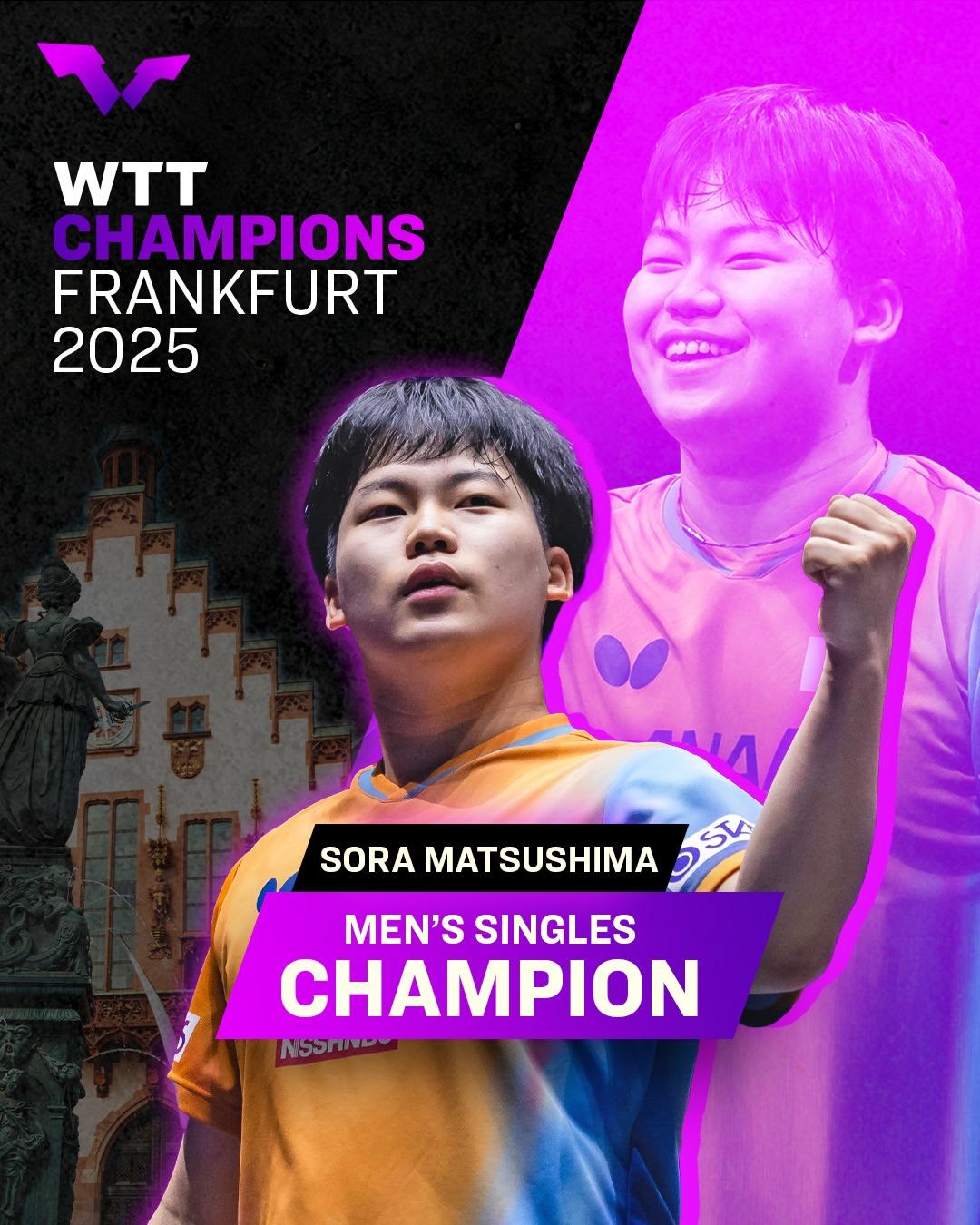 WTTins报道。在WTT法兰克福站男单决赛中,日本选手松岛辉空首次夺得冠军,成为本站赛事的男单冠军!#乒乓球
