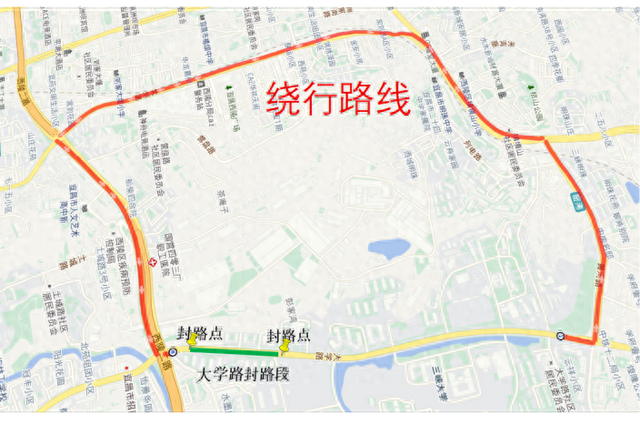2.原经大学路由沙河往城区方向行驶的车辆,在道路管制期间,可选择黄河路西陵二路快速路、常刘路、体育场路道路绕行。