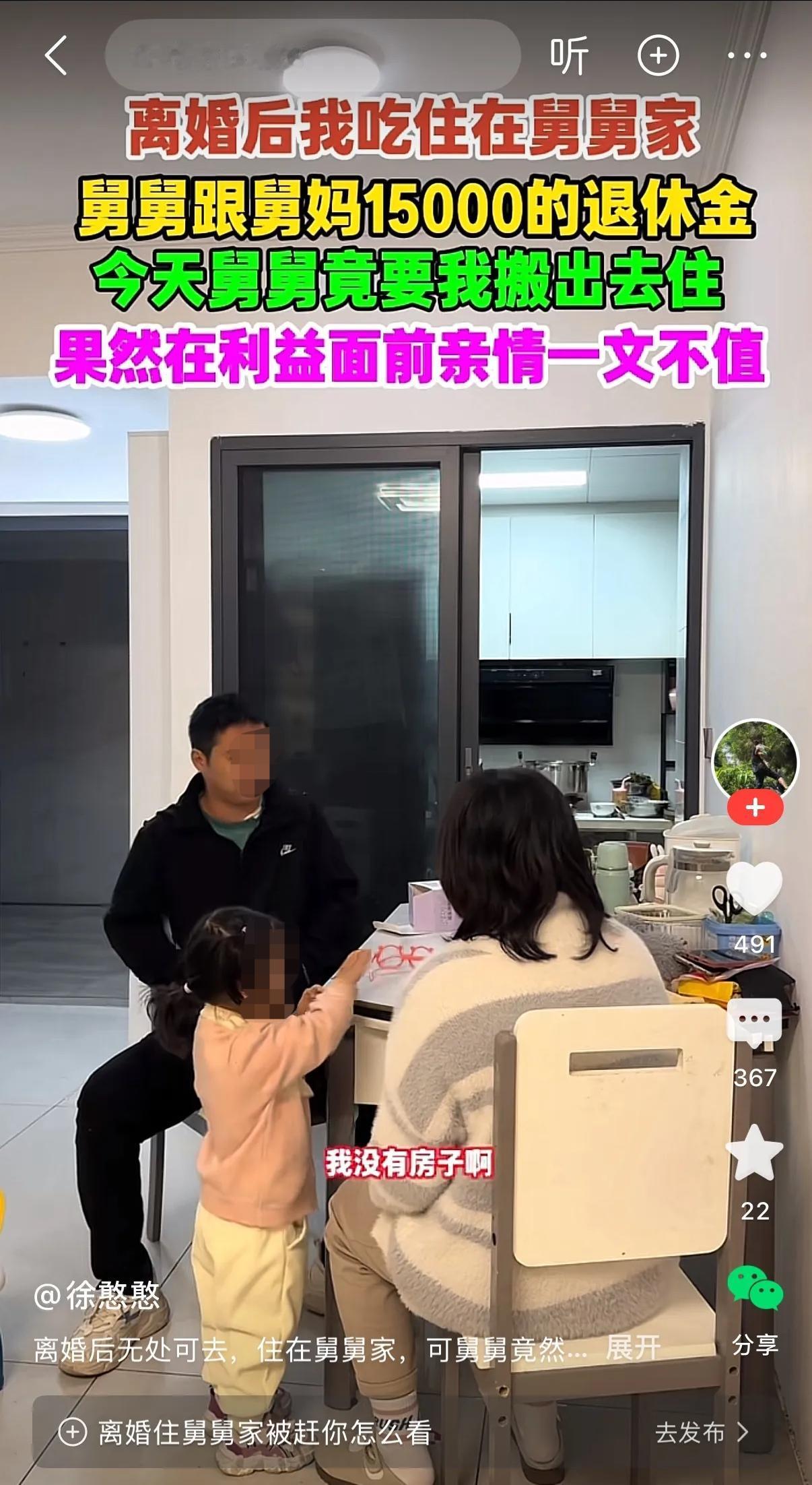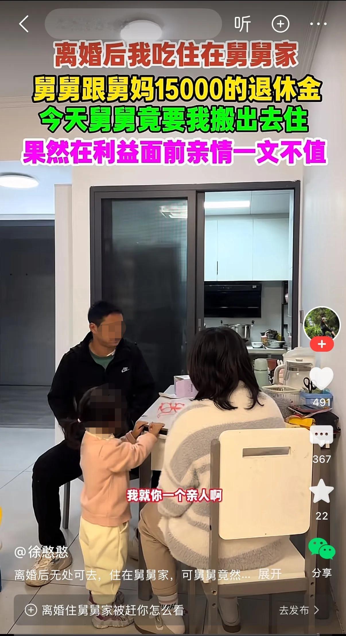 别拿道德绑架亲情,这就叫倒打一耙! 女子离婚后带着孩子一直住在舅舅家,这一住就是