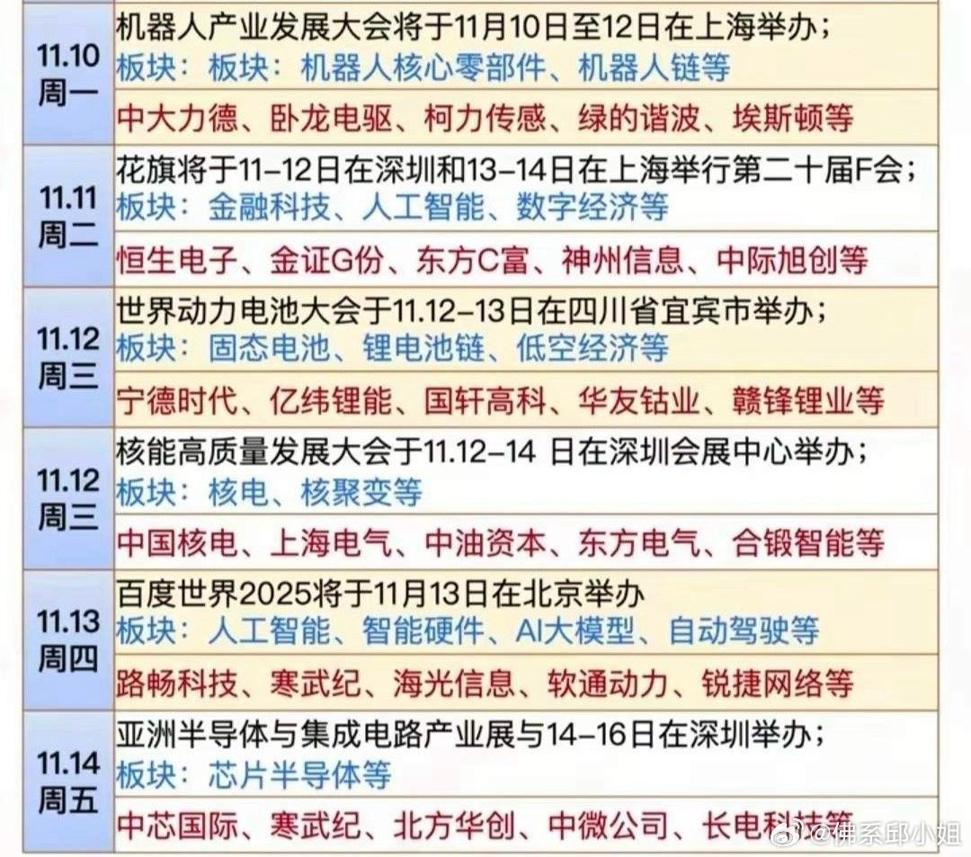 本周(11.10——11.14)热点财经会议受益板块梳理分析!