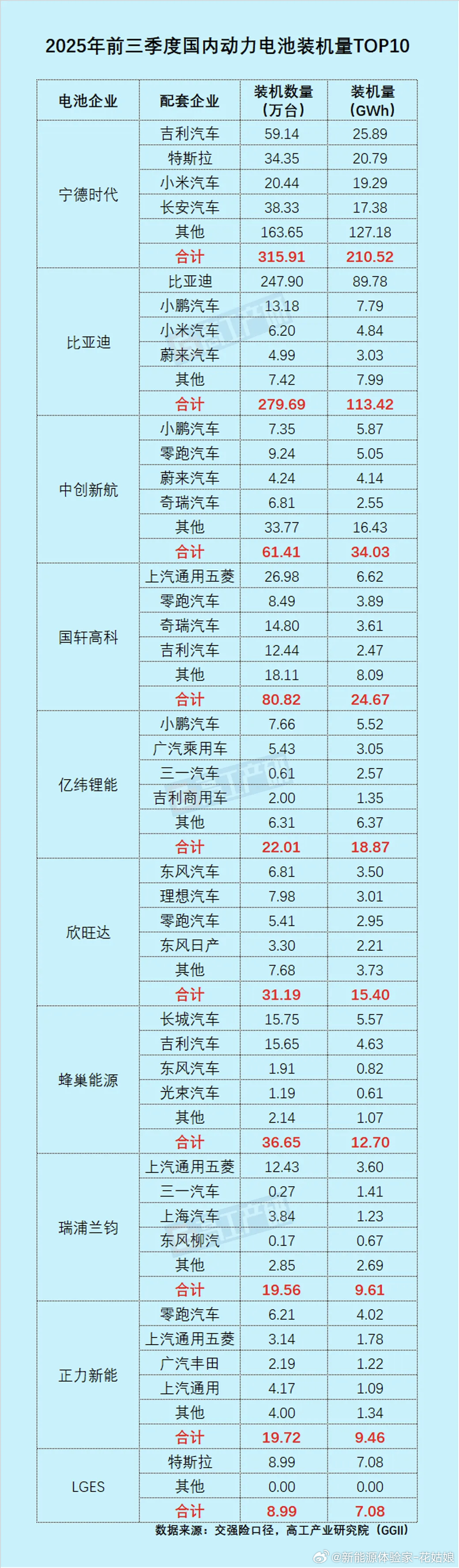 2025前三季度,比亚迪动力电池装机量以113.42GWh稳坐TOP2,但细看数据有点“反差萌”:自家车型吞下89.78GWh(占比超79%),外供仅分到23.64GWh。