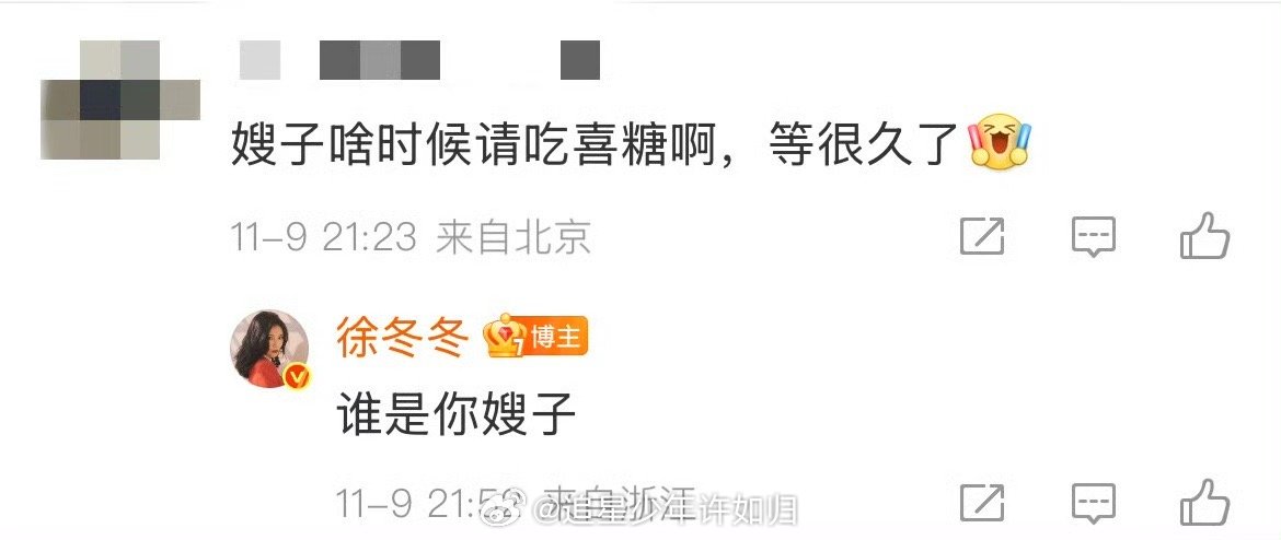 徐冬冬 谁是你嫂子 网友在线催婚直接翻车!面对"嫂子啥时候请吃喜糖"的灵魂拷问,徐冬冬一句"谁是你嫂子"机智回应,这波打马虎眼我给满分!果然在催婚这件事上,明星的应对方式永远这么清新脱俗~