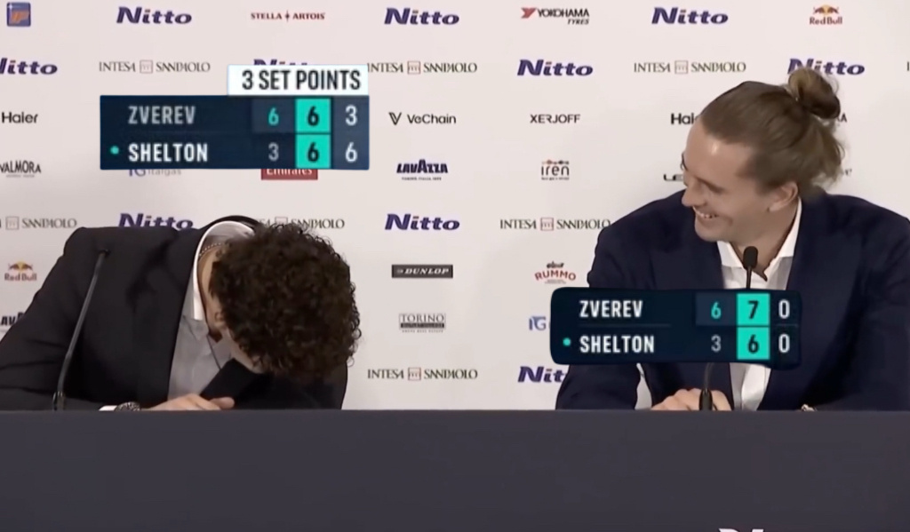 ATP年终总决赛比约·博格组首轮,兹维列夫第二盘抢七3-6落后连得五分,最终6-3/7-6(6)击败谢尔顿,五连胜对手,取得开门红💡