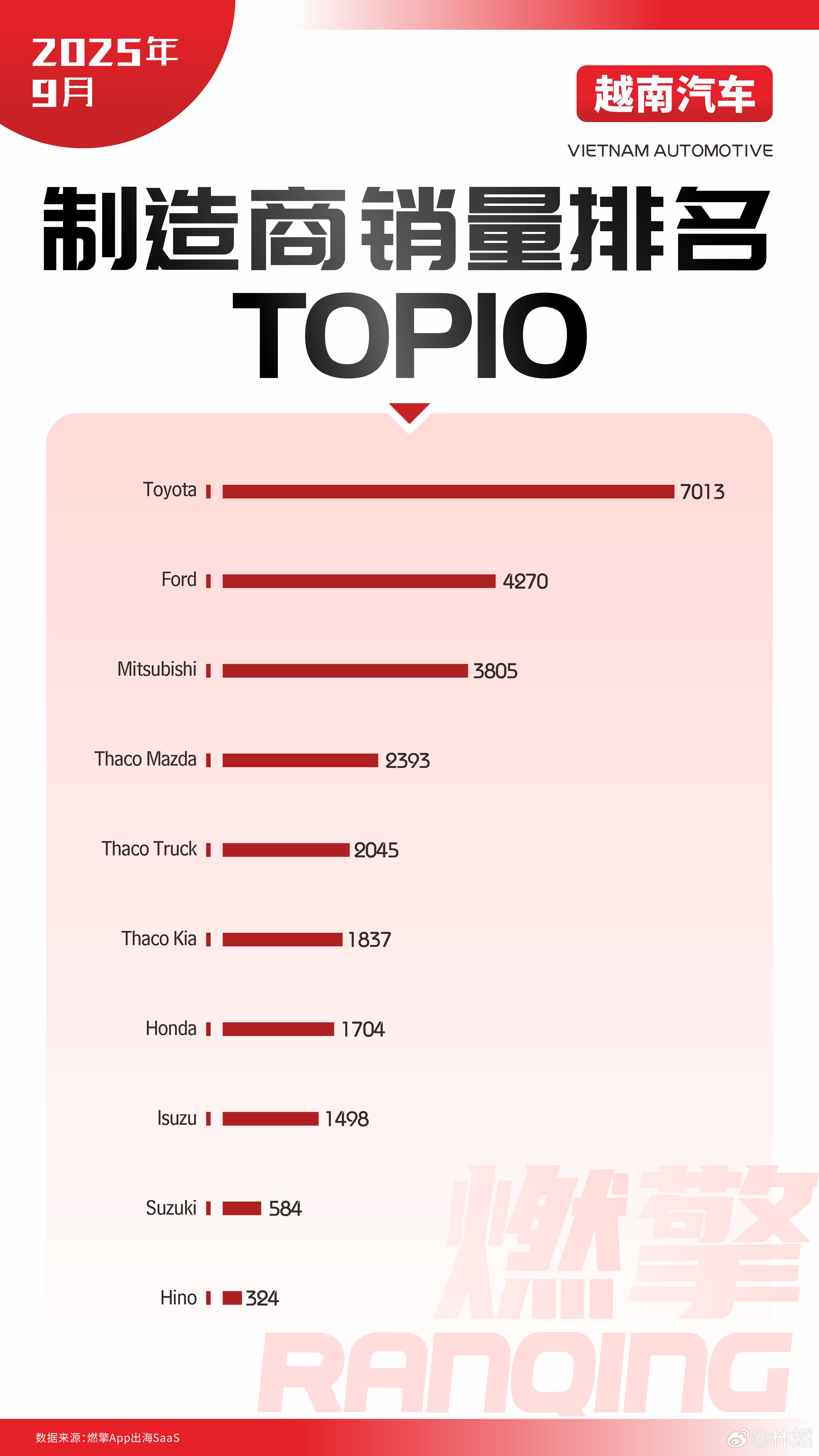 9月越南汽车市场呈现日系品牌垄断,燃油车基本盘,本土车企初步崛起,短期内,日系燃油车的统治地位仍将持续;本土车企若想突破,需在本土化生产降本(如建设本地组装厂)、政策扶持(争取关税优惠)上发力,或提前布局新能源赛道以抢占转型先机。