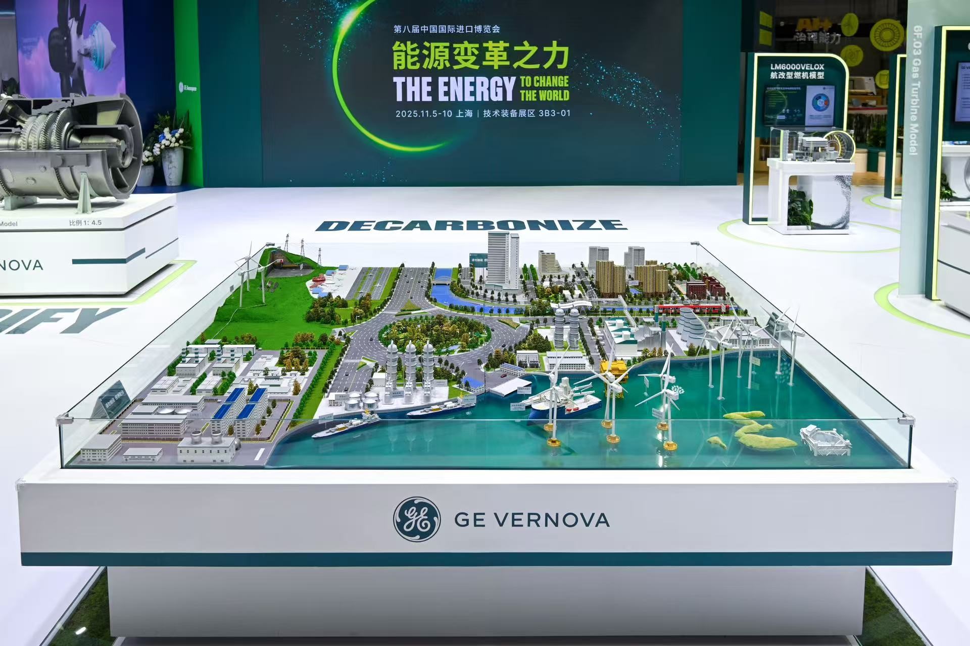通用电气能源在第八届进博会期间展示的能源转型沙盘(资料图片)