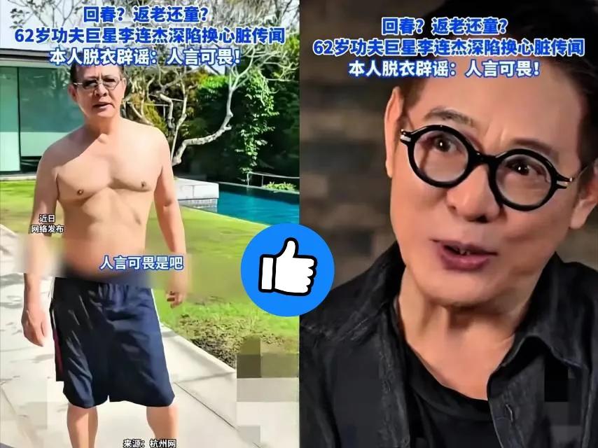 我怀疑过李连杰icon是换了心脏, 也怀疑过他是换了血, 但唯独没想到的是他自己 光膀子游泳视频流出,光滑胸膛没半点刀疤,直接打脸所有谣言! 李连杰光膀子游泳的视频一出来,直接把“换心换血”的谣言锤得粉碎! 光滑胸膛没半点刀疤,这波自证也太刚了! 原来他之前体重波动是甲亢吃药导致,去年脖子长硬块做手术,还自嘲是“硬件返修”,这心态真的绝了。 现在淡出高强度工作,每天练太极、做瑜伽调理旧伤,饮食作息比年轻人还规律。 探班吴京时,居然抢着吃5块钱食堂的土豆丝,接地气到让人意外。 其实哪有什么神奇康复秘诀,不过是好心态加规律生活的双重加持。 真正的养生从不是靠偏方或谣言里的“神操作”,而是接纳身体的小状况,用积极的方式慢慢调理。 你觉得普通人能做到像李连杰这样,用好心态对抗身体不适吗?来评论区聊聊~李连杰 李连杰动作片 晚年李连杰