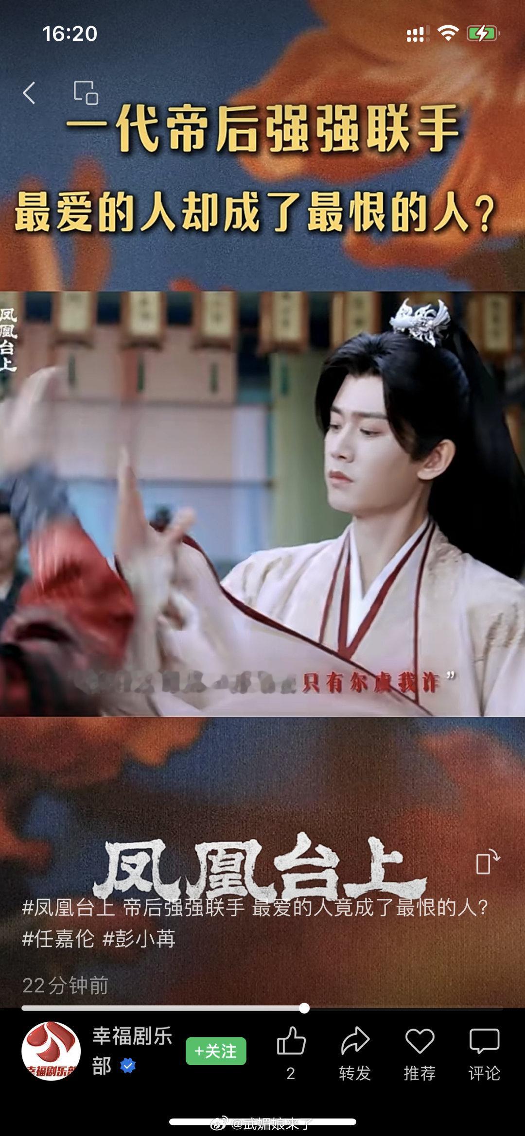 江苏卫视视频号发任嘉伦的凤凰台上预告预热了!!快开播吧!等不及了!