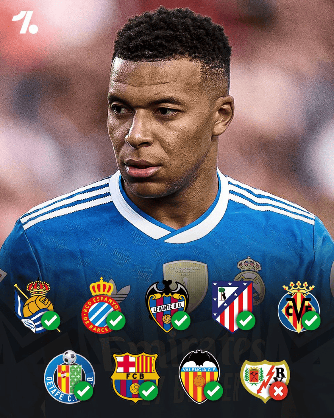 根据OneFootball的统计,姆巴佩在西甲联赛连续进球的纪录就此作古,他在这项赛事连续进球的纪录最终定格在八场。
