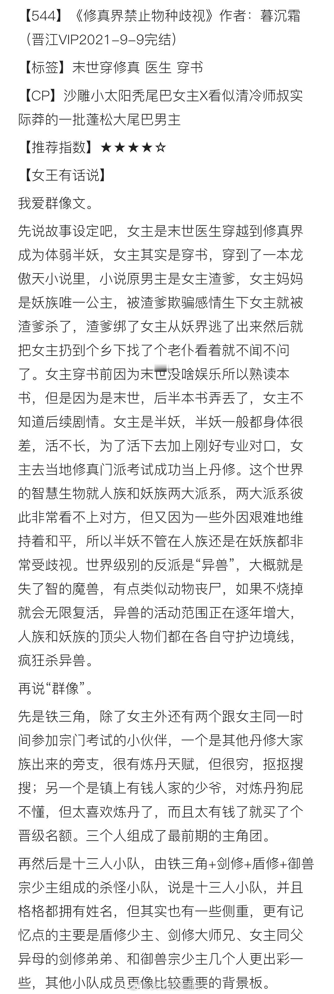 【544】《修真界禁止物种歧视》作者:暮沉霜(晋江VIP2021-9-9完结)