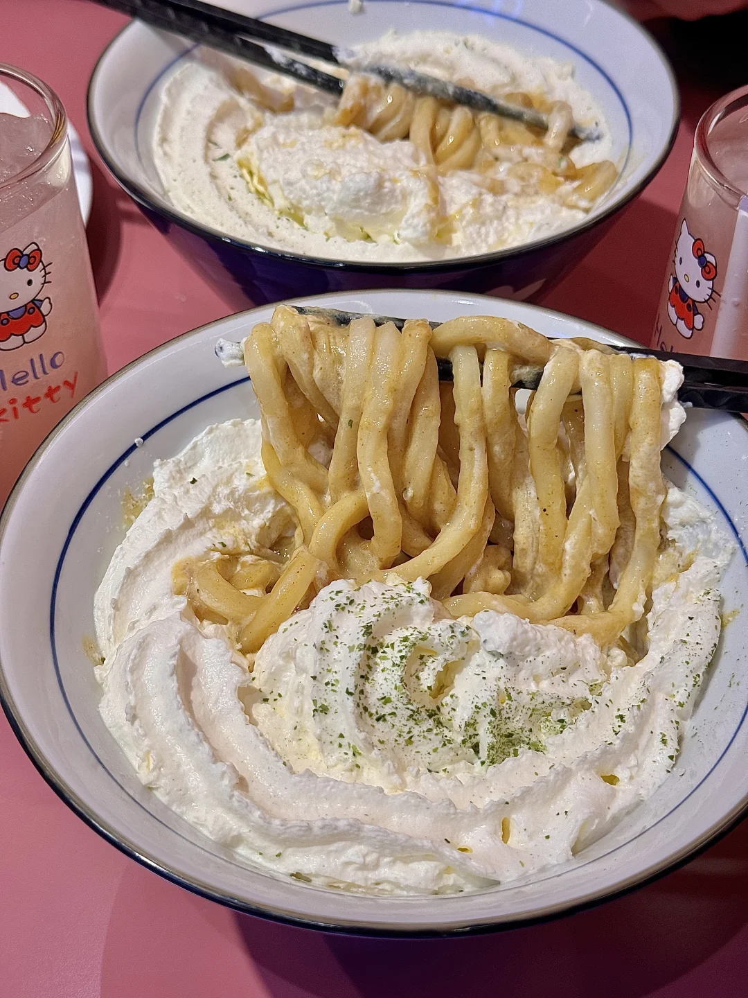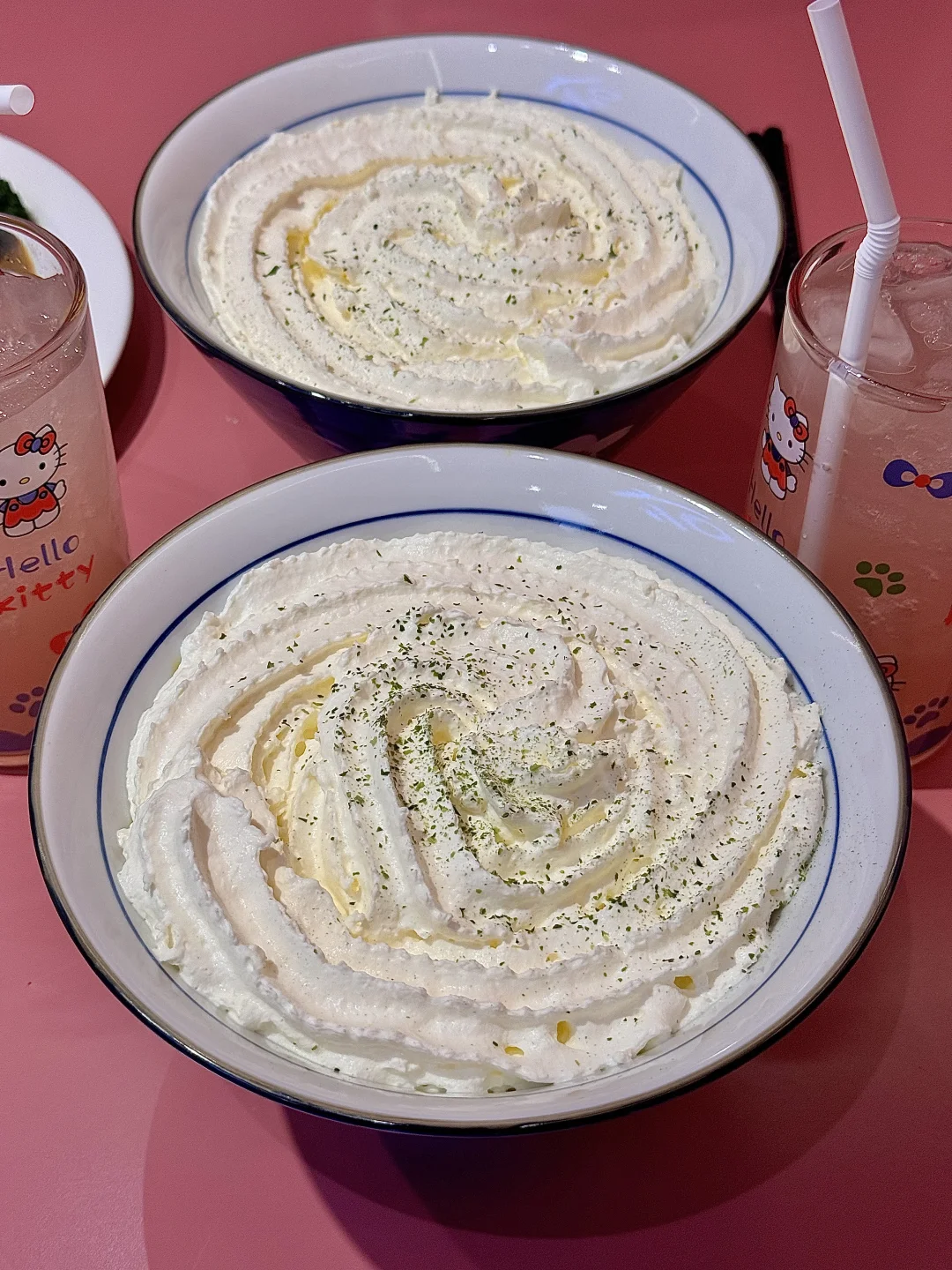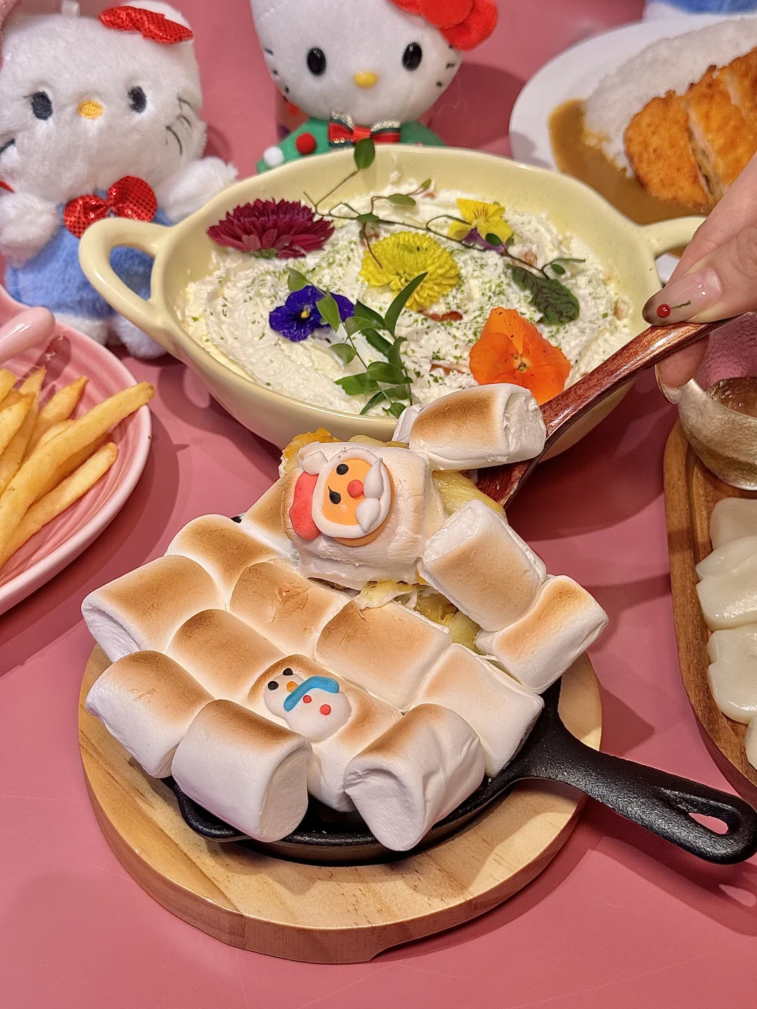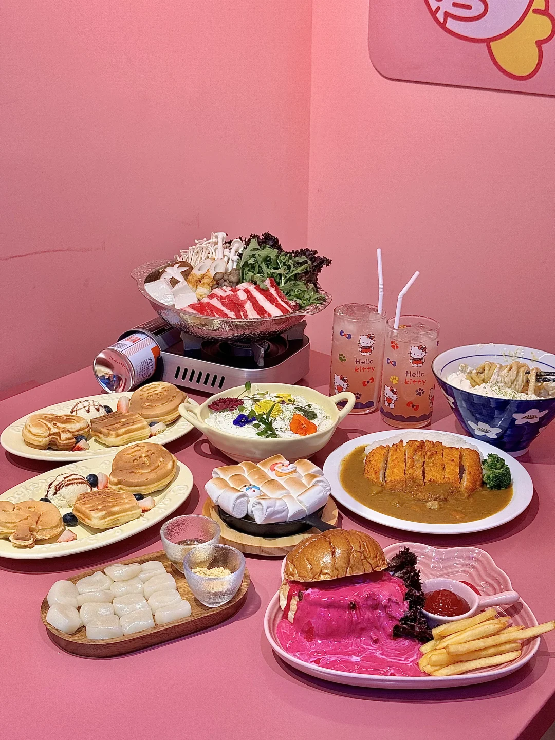 北外滩来福士新开的Kitty主题餐厅🍴 一整个芭比粉色系也太好看了吧!Kitty汉堡、气泡水🫧史努比华夫饼🧇炸鸡、还有奶油乌冬面…… 真服了没有一样不好吃🤤
