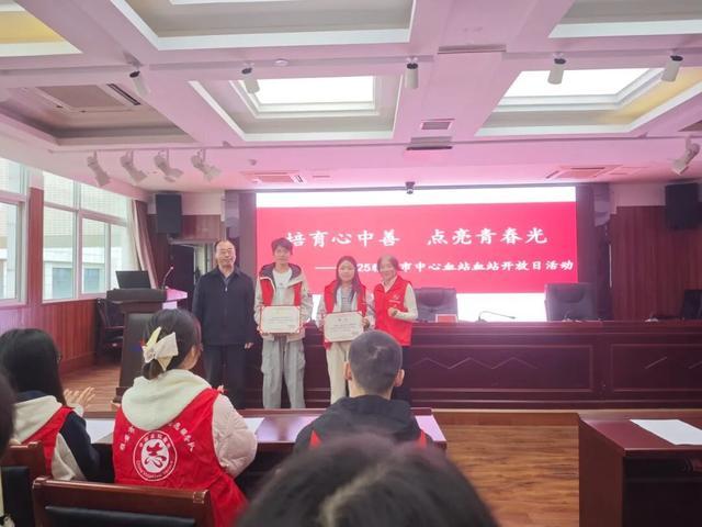 致辞结束后,活动迎来一个庄重而温馨的环节——为四川农业大学无偿献血宣传志愿服务队队长闫敬蓉、副队长罗康晨颁发聘书。这不仅是一纸证书,更是一份信任与托付,标志着高校与血站合作迈向制度化、常态化的新阶段。
