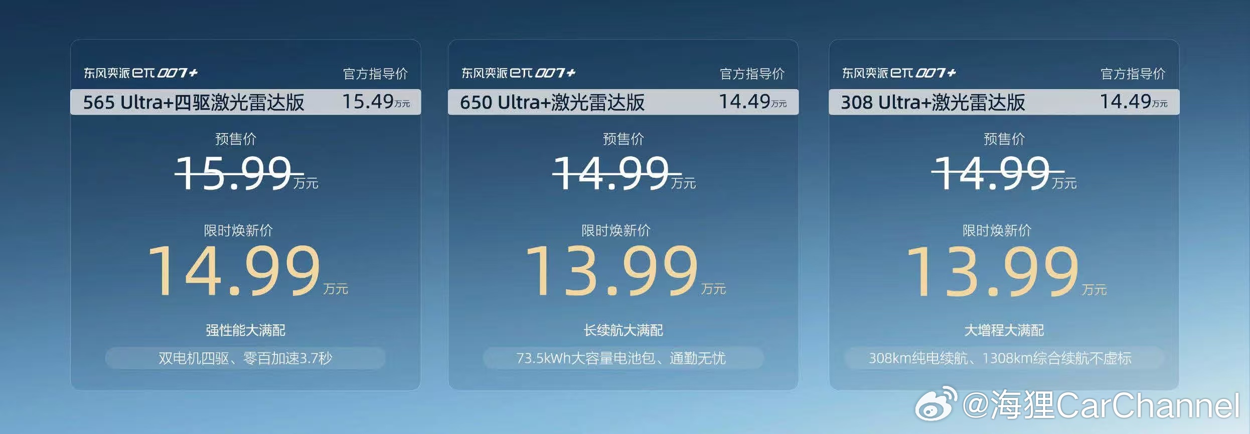 年轻人的科技性能玩具eπ007+上市全系标配激光雷达