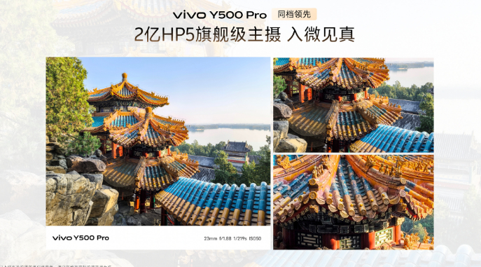 Y500 Pro 国民小旗舰影像方面,vivo Y500 Pro搭载了2亿HP5旗舰级主摄,采用了旗舰同款三星HP5大底传感器,感光面积同比提升了56%,还支持2亿HP5旗舰级主摄。