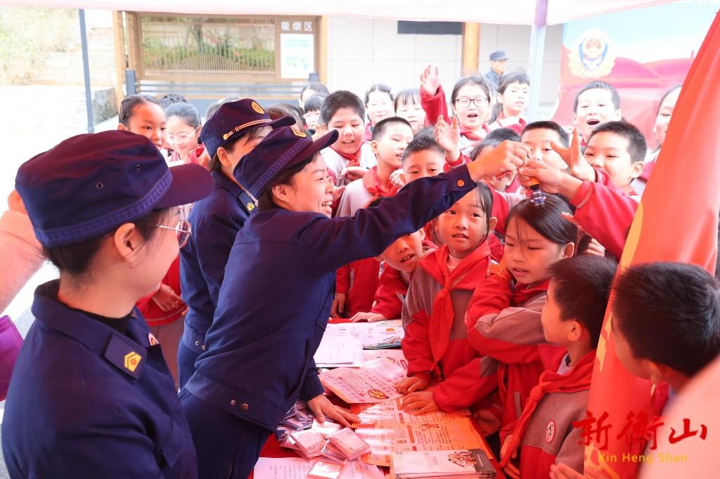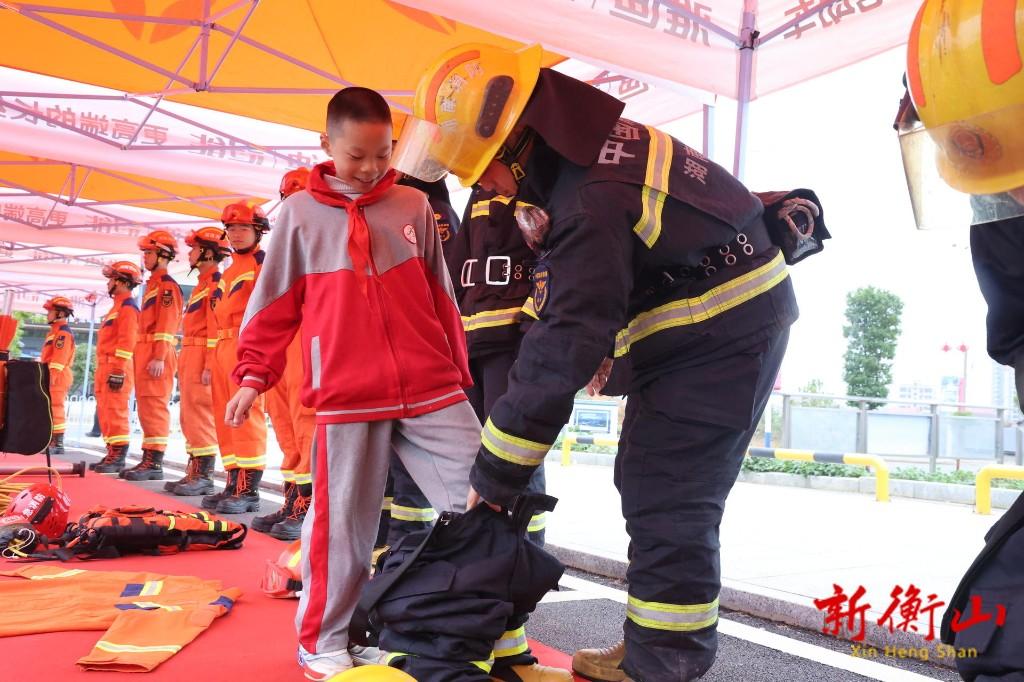 启动仪式现场设置了消防安全知识咨询台、消防装备器材展示区以及体验互动区等多个功能区域。消防救援人员现场展示了破拆工具、空气呼吸器等专业消防装备,并详细讲解其用途和操作原理,让群众直观感受消防救援的“硬核”力量。互动区内,孩子们通过安全知识问答、体验消防装备等趣味活动,在玩乐中学习消防知识,赢取精美礼品,现场互动氛围热烈高涨。