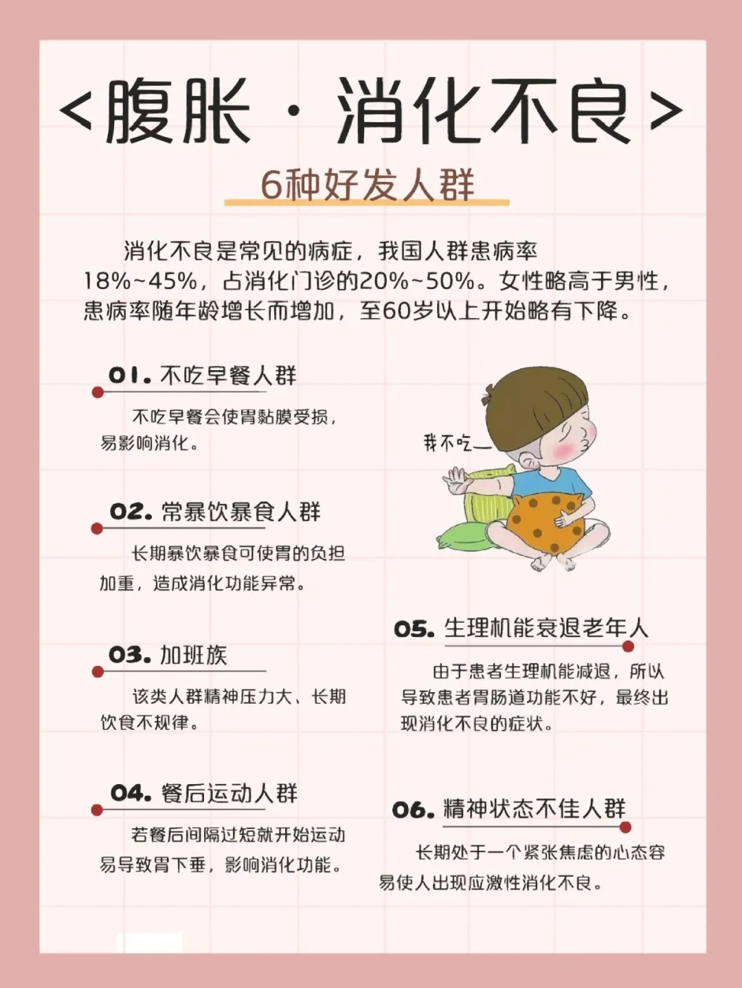 4种典型症状: 1.餐后饱胀 由于食物长时间存留于胃内不经过消化和排泄,长期堆积引起的不适感。 2.早饱感 指进食少许食物即感胃部饱胀,食欲消失、不能进常规量的饮食。 3.上腹痛 疼痛多无规律,部分患者与进食无关,有时患者无疼痛感,而主诉为特别的不适。 4.上腹烧灼感 位于胸骨剑突下、脐水平以上,两侧锁骨中线之间区域的难受烧灼感,与烧心不同,后者指胸骨后的烧灼样疼痛或不适。