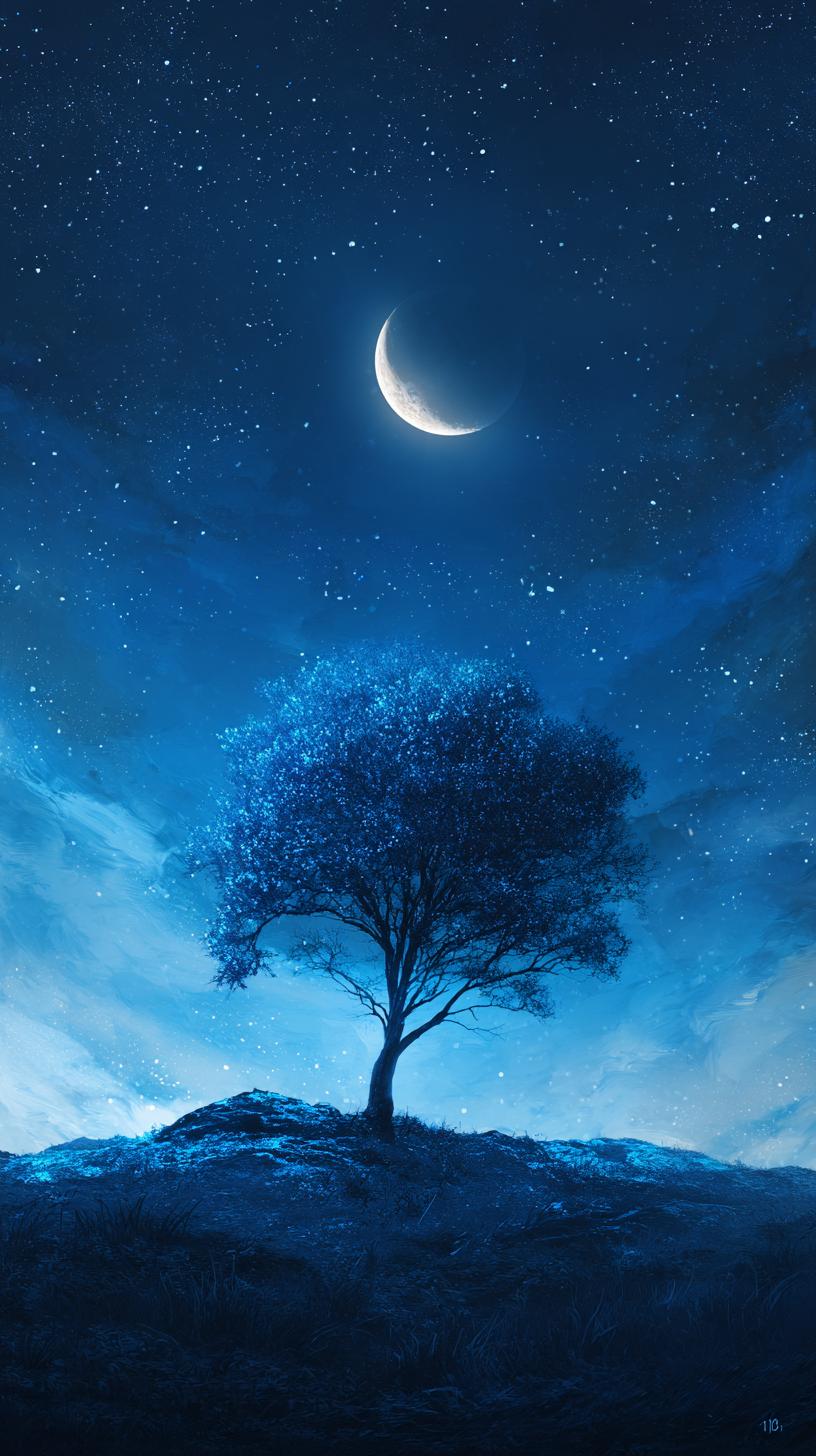 宁静的夜晚,蓝丝绒般的夜空,闪烁的星星,柔和的月光。孤山之上的蓝调树影,正托着半弯月牙儿,像天地间最温柔的烛台,把星光都酿成了树尖的露珠呢分享手机里随手拍的风景照片治愈系美景照 推荐好看的手机壁纸 分享最美的壁纸风景图片