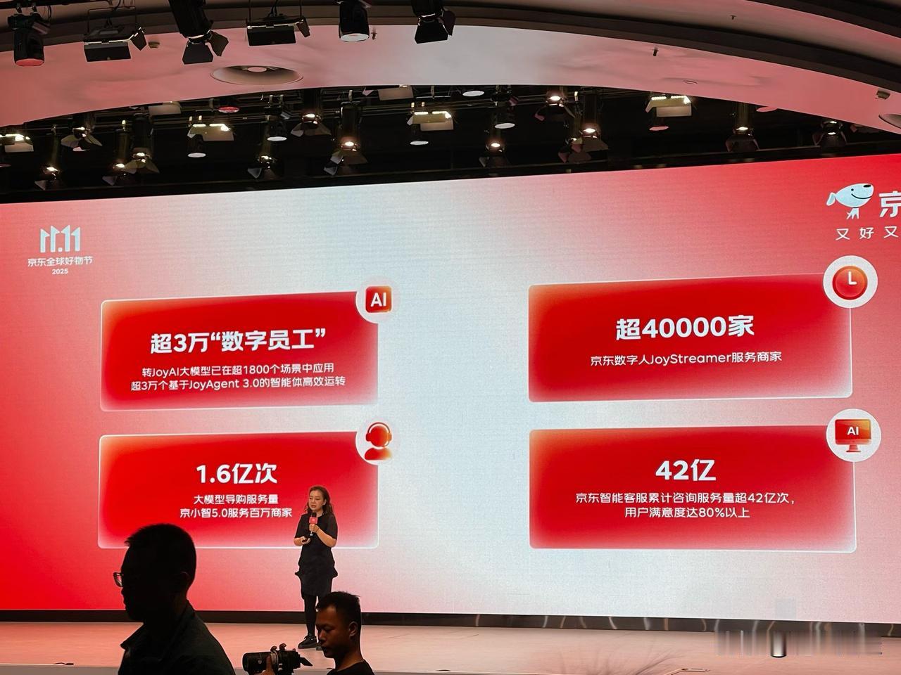双十一期间,京东活跃用户增加24.7%,外卖日订单超2500万,AI已融入双11各个环节,超3万个智能体在双十一期间实现高效协同。
