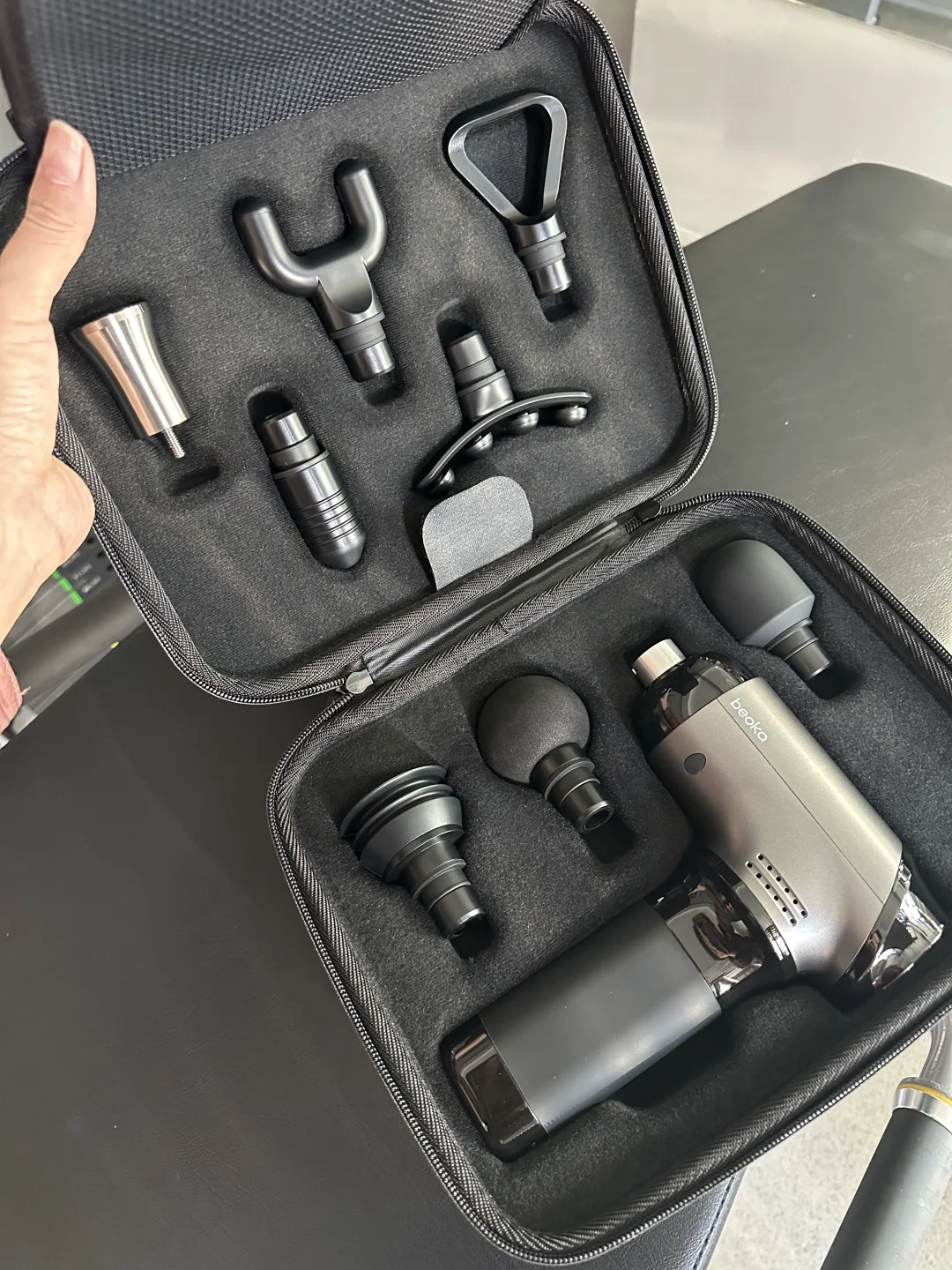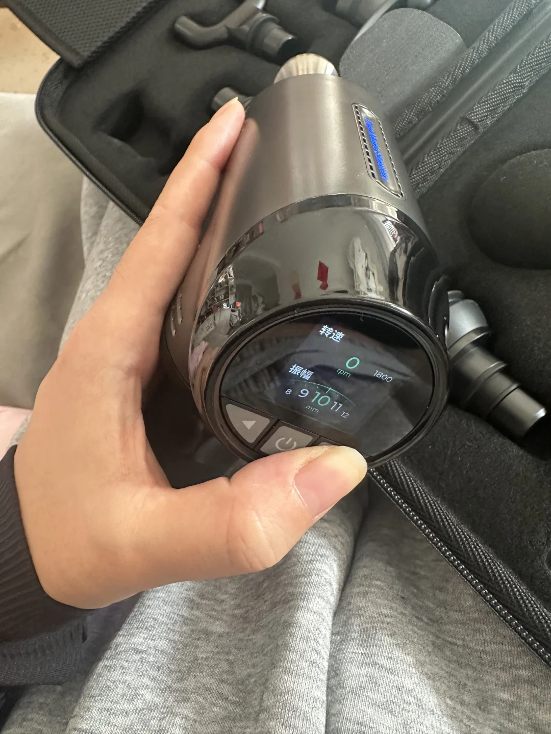 筋膜枪也是我作为教练最常用最普遍的工具之一,给会员放松减少肢体接触的同时强度也适用,不会轻了没感觉,一用力重了像之前用的机器一样直接强制停机,它这个还有压力感应灯,用力过度会有红灯提示,力度上也更好掌握一些,总体性价比还是不错的。