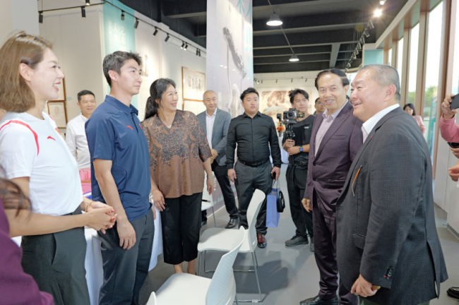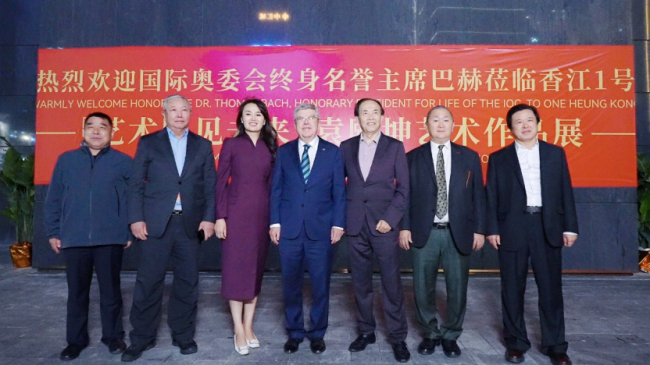11月10日,十五届全运会首日,当天下午,国际奥委会终身名誉主席巴赫、国际奥委会名誉委员、中国奥委会副主席于再清到访广州香江1号艺术广场为著名艺术家袁熙坤老师的“艺术照见未来·袁熙坤艺术作品展”剪彩,香江集团董事局主席刘志强、羽毛球世界冠军唐九红、中共二十大党代表,奥运冠军世界纪录保持者武大靖、2012年伦敦奥运会男子双人十米台冠军,广州市跳水队总教练张雁全、前中国花样游泳国家队运动员,世界冠军、全运会冠军钟輗出席。