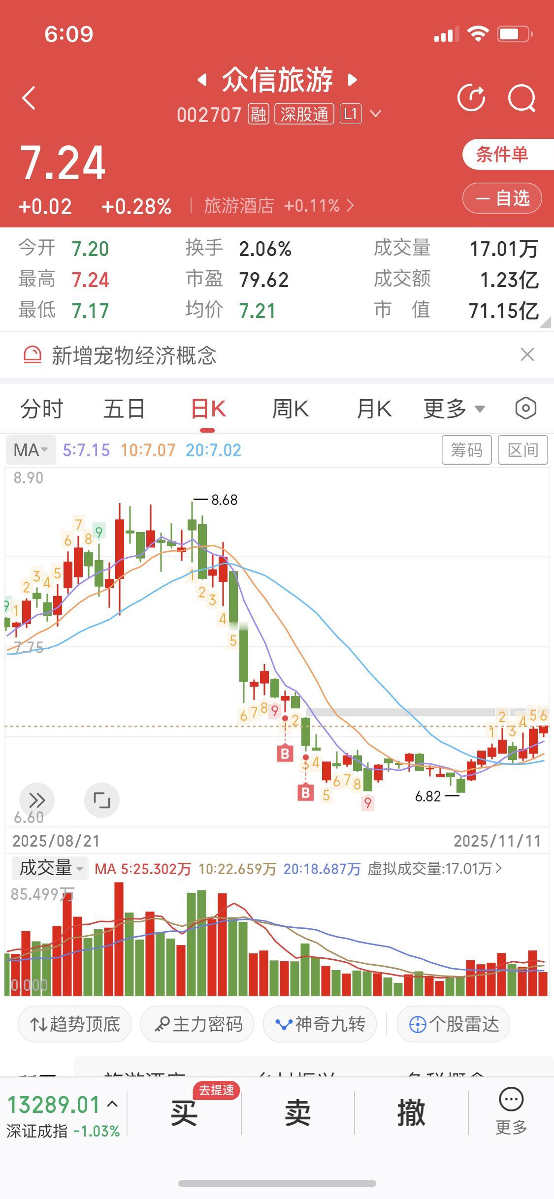 我在众信旅游这支票上蹲守很久了,感觉胜利的曙光就在眼前,鱼儿快上钩,耐心也快换来真金白银。不过看看股吧里大家的吐槽,也是一言难尽。有人说这股一点品牌意识都没有,大股东也被诟病。还有股友亏了30个点,说它跌起来第一名,涨起来最后一名。但从行情看,10月21日收盘价7.01,涨了0.29%。也许之前它表现不佳,可我还是期待它接下来能爆发,让我在这漫长等待后狠狠赚一笔。