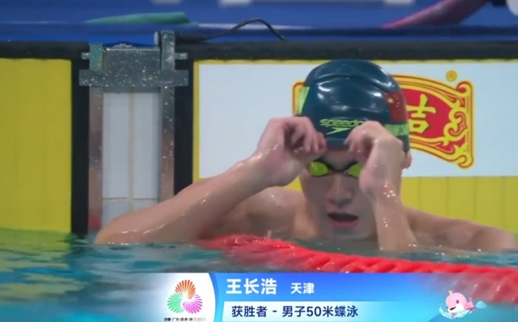 直播吧11月11日讯全运会游泳男子50米蝶泳决赛,天津队的王长浩23秒30夺得金牌,距离自己保持的全国纪录相差0.05秒,徐放获得银牌,沈加豪获得铜牌。
