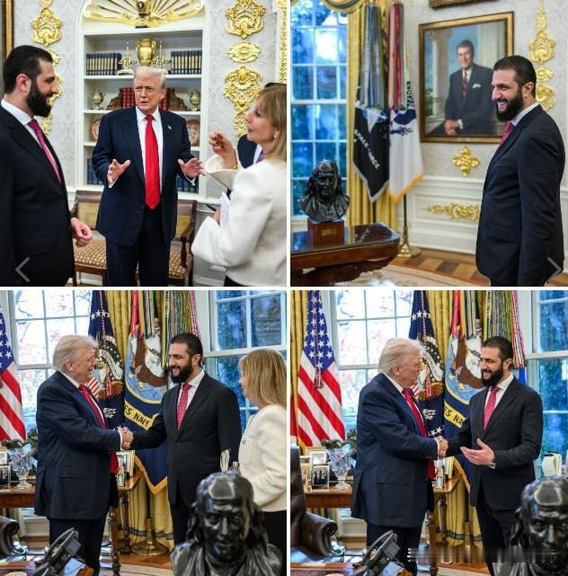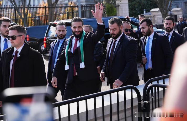 叙利亚总统艾哈迈德·沙拉在本国一众保镖的护卫下,从容轻松地走在华盛顿街头,在白宫外向支持者挥手致意。 事实上,这是特朗普今年与沙拉之间的第三次会面,被视为两国关系正常化的关键一步。当然,两国有着共同的地区和安全利益,彼此相互需要,才让他们最终走到一起。 很有讽刺意味的是,艾哈迈德·沙拉是美国政府指定的恐怖组织基地组织的前领导人,曾被美国作为恐怖分子通缉,并被悬赏1000万美元,甚至还在臭名昭著的阿布格莱布监狱服刑。